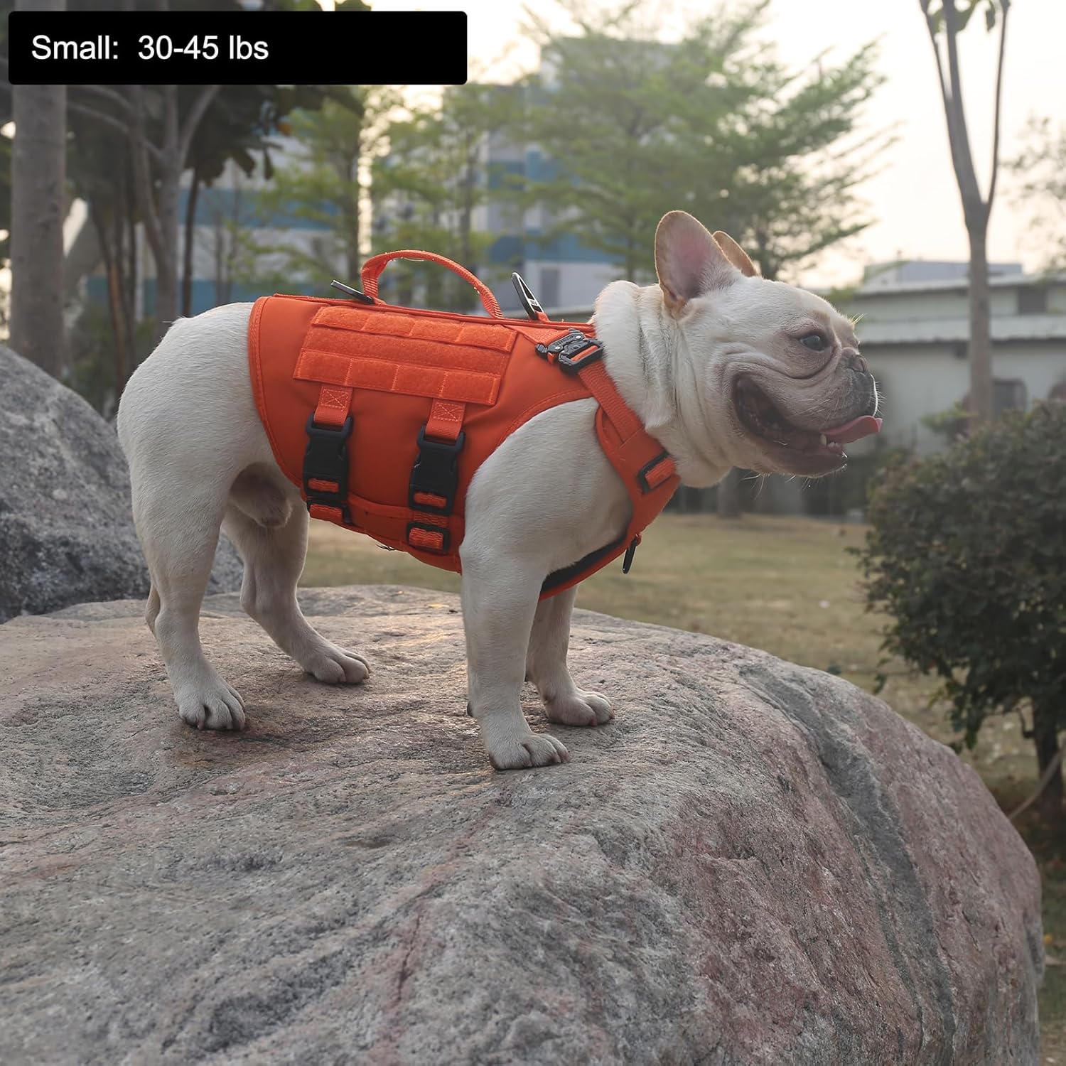 ICEFANG GN3 Tactical Dog Harness with 6X Buckle,Dog Molle Vest with Handle,3/4 Body, Hook and Loop Panel for ID Patch,No Pulling Front Clip (S (Neck 14"-18"; Chest 22"-27"), Safety Orange)