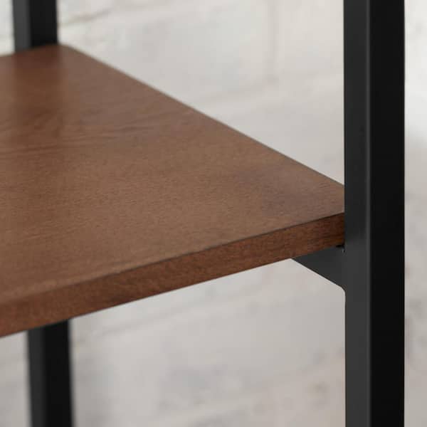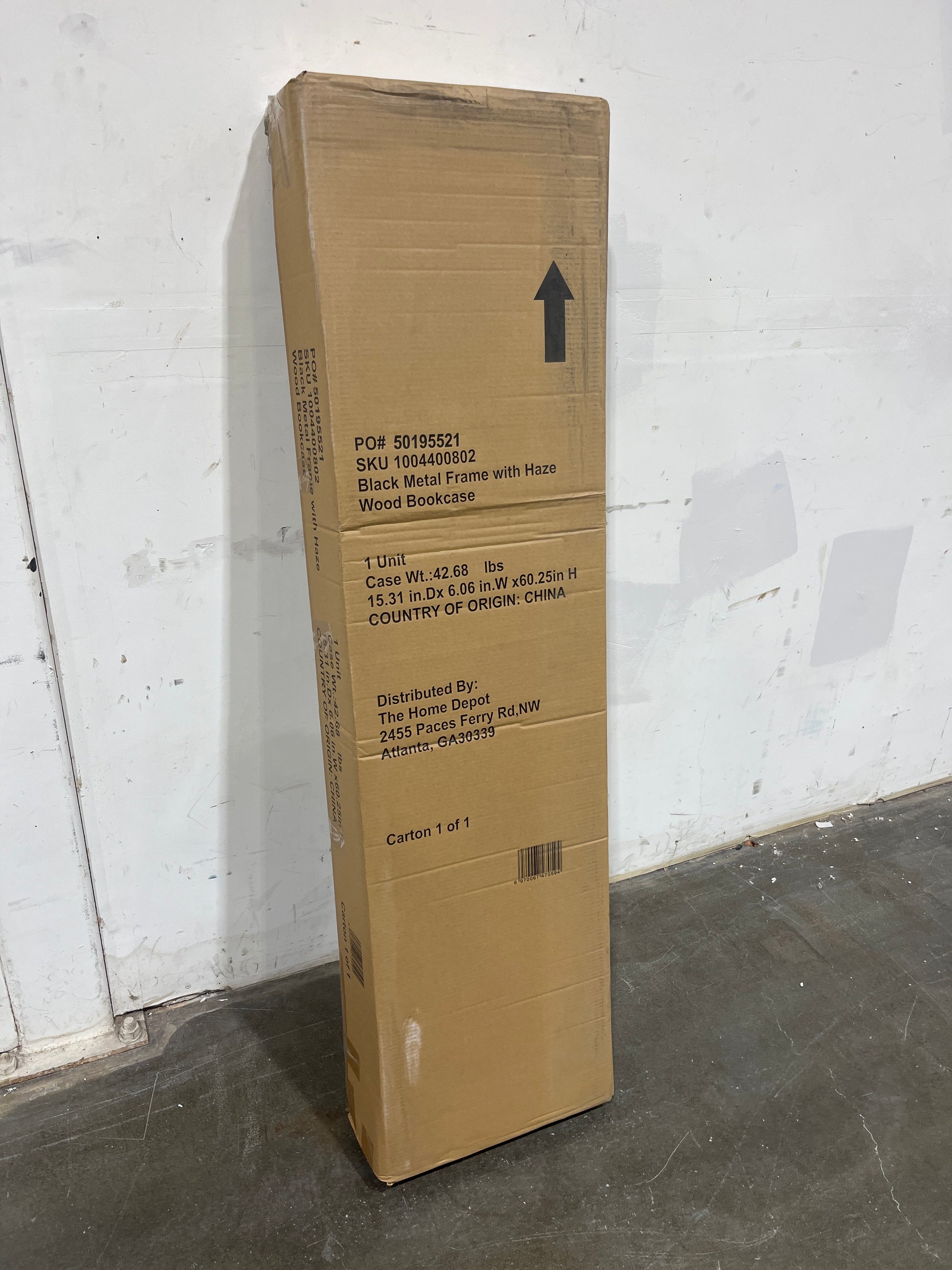 58 in. Black Metal/Haze Wood Finish 5-shelf Accent Bookcase with Open Back