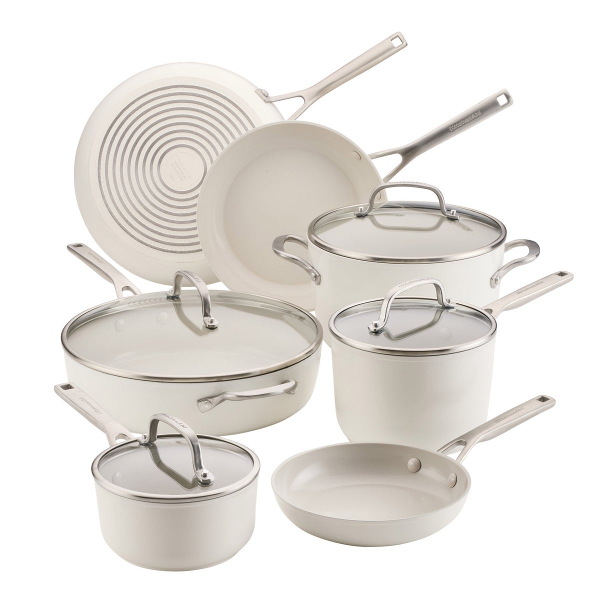 - KitchenAid Hard-Anodized Ceramic Induction Cookware Set, 11-piece, Ceramic Non-Stick Interior, Made without PFAS, including PTFE, Compatible with All Cooktops, Including Induction, Oven Safe up to 500°F, 350°F with Lids, Limited Lifetime Warranty
