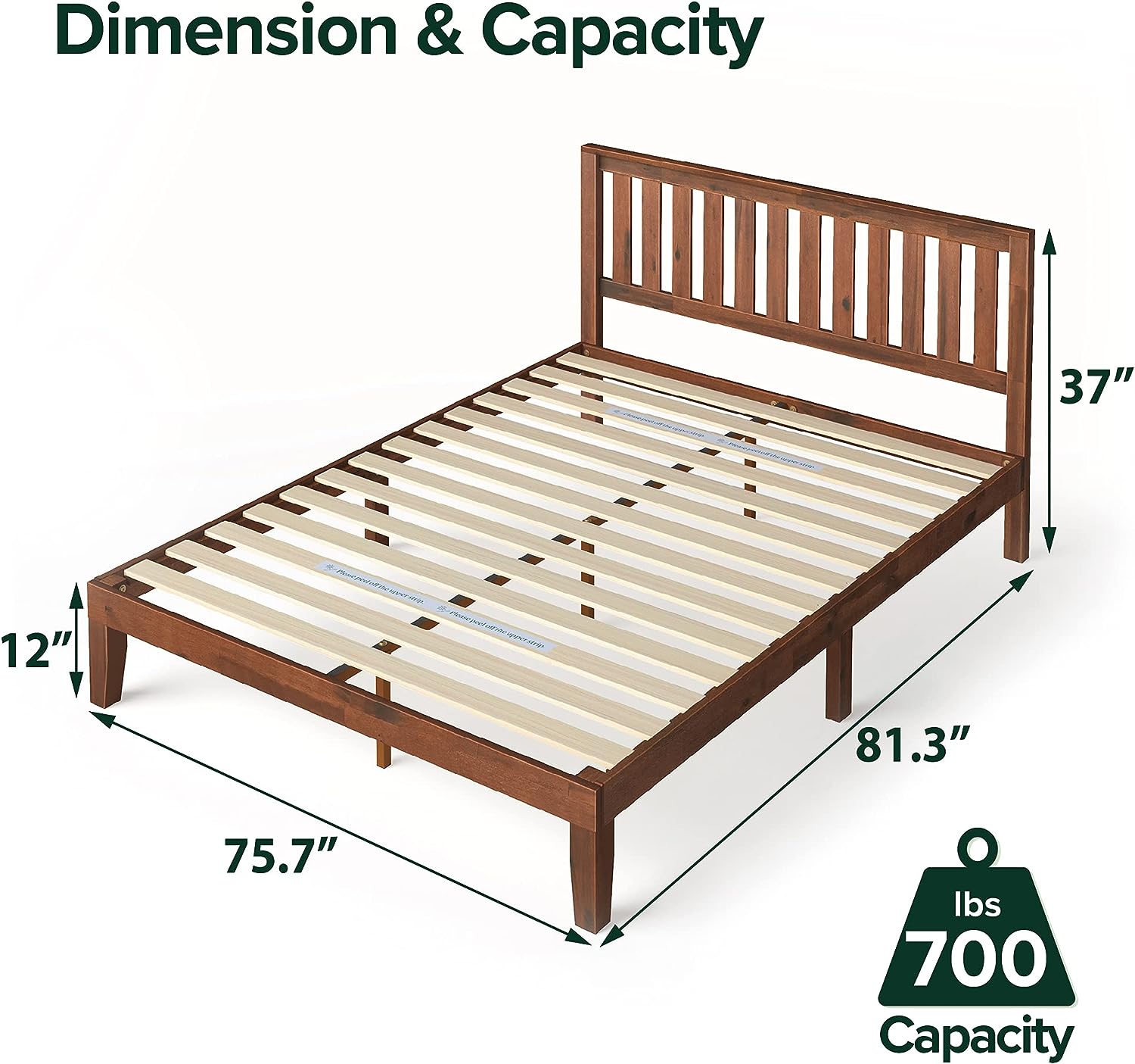 - NO BOX SPRING NEEDED - Reliable and closely spaced wood slats are designed to support and extend the life of your latex, memory foam or spring mattress without the need for a box spring.DURABLE DESIGN - A thick and sturdy solid wood frame is constructed with steel interior framework for longevity; twin size supports a maximum weight capacity of 350 lbs, while all other sizes can support up to 700 lbs
