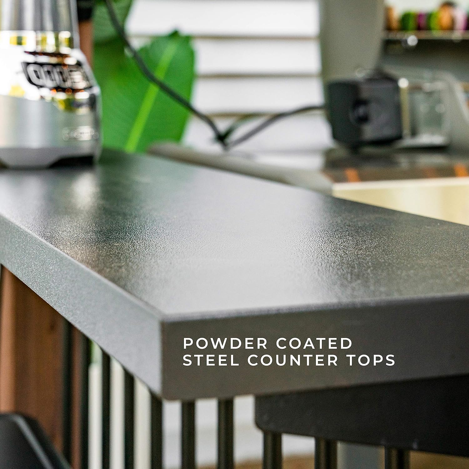 - Powder Coated Steel Surfaces: Two built-in powder-coated steel countertops for serving and prepping