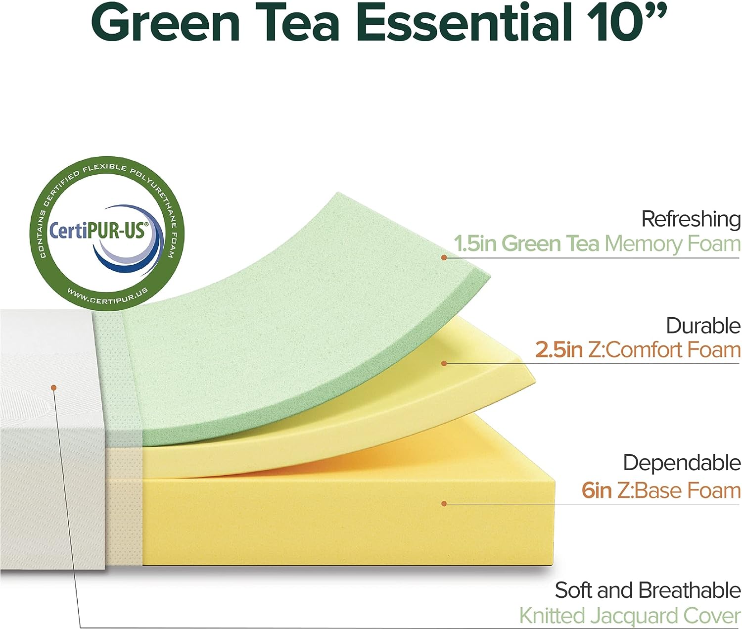 AN AFFORDABLE RECIPE FOR GOOD SLEEP – Made with refreshing green tea extract, body hugging memory foam, and a modest price tag, the Green Tea Essential Mattress is a classic you’ll want in any spare bedroom, guest room, or kids’ room