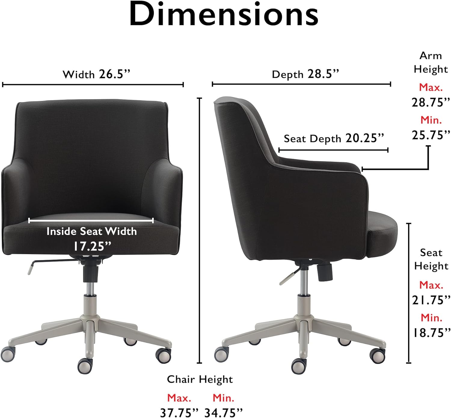 NEW in Box - Tommy Hilfiger Belmont Home Office Chair Adjustable Height and 360 Swivel for Computer Desk, Stainless Steel Base with Smooth Rolling Casters, Twill Fabric Upholstery, Twill Fabric Dark Gray - Retail $285