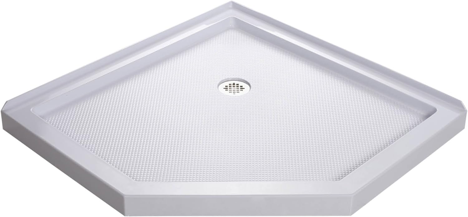 NEW - DreamLine SlimLine 42 in. D x 42 in. W x 2 3/4 in. H Corner Drain Neo-Angle Shower Base in White, DLT-2042420 - Retail $379