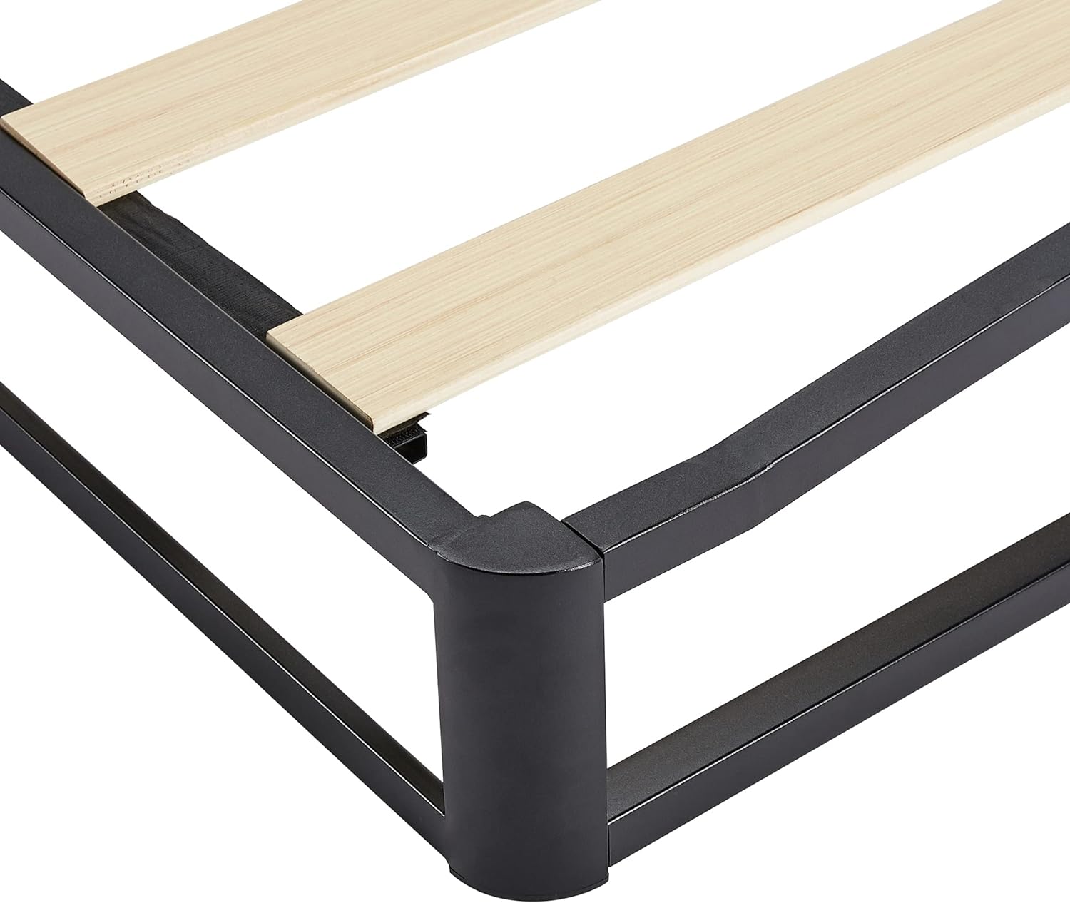 NEW - Amazon Basics QUEEN Metal Platform Bed Frame with Wood Slat Support, 10 Inches High, Black - Retail $137