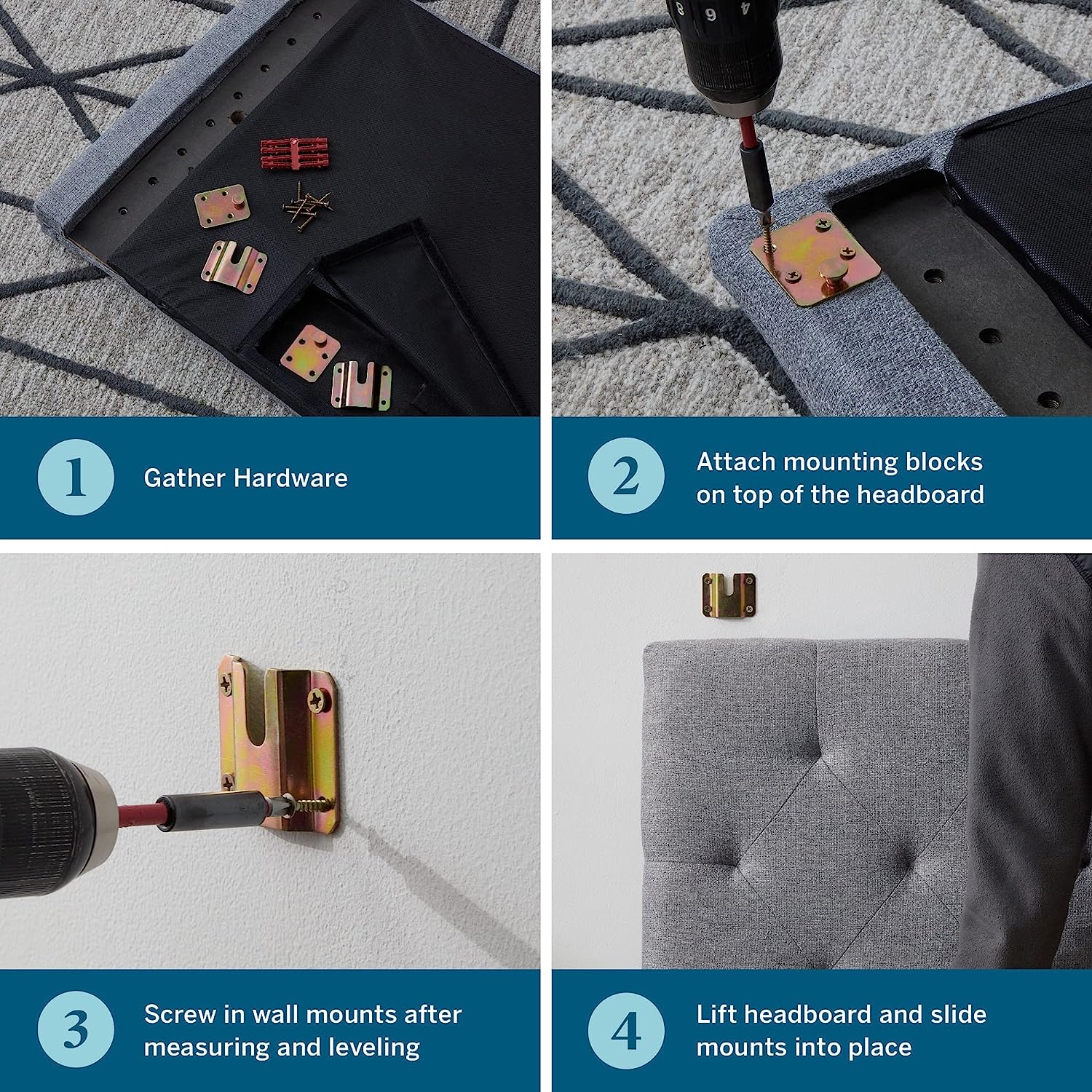 STYLISH MODERN DESIGN - With elegant diamond tufting, a linen-inspired fabric finish, and thick padding, this upholstered headboard brings a comfortable feel and modern refinement to any bedroom, ADJUSTABLE HEIGHT COMPATIBLE WITH MOST BED FRAMES - This versatile headboard can adjust in two-inch increments from 34 to 46 inches. Plus, includes wall mounts for a floating headboard and universal compatibility easily complete any space, HARDWARE INCLUDED FOR EASY ASSEMBLY - Everything you need for quick and easy assembly is included in a hidden back panel. Attach both legs to the headboard and secure it to your bed frame, or mount it to the wall, for a classic look in under 5 minutes, WEVE GOT OPTIONS - Available in a wide variety of sizes and colors, with adjustable height options, this headboard can beautifully complete any room in your home. Choose from Black, Charcoal, Cobalt, Pearl, or Stone colors to enhance your space, QUALITY CONSTRUCTION + LIMITED LIFETIME WARRANTY - Durably made and carefully constructed, this headboard has a limited lifetime warranty covering manufacturing defects, spot clean headboard with mild detergent and a damp cloth