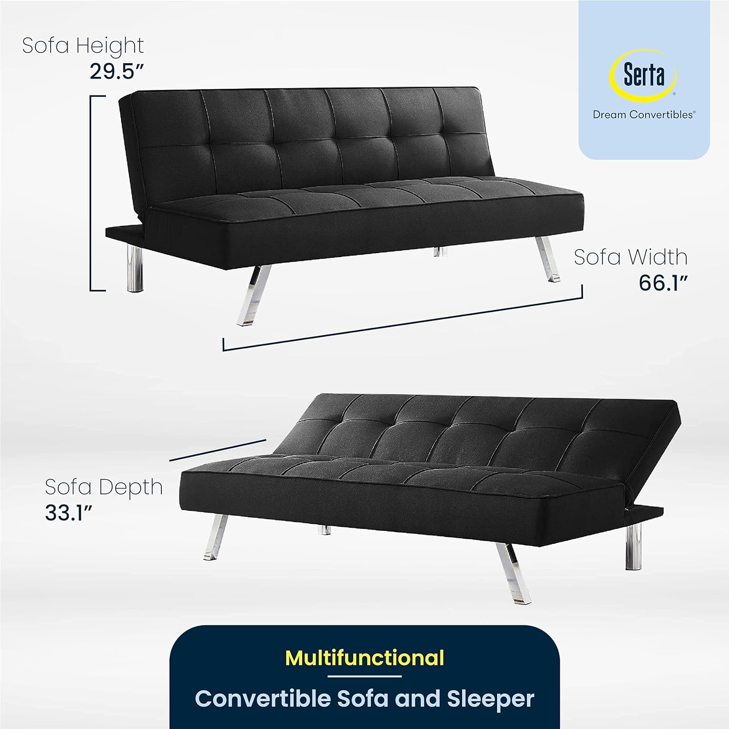 EAUTY: This futuristic, convertible sofa has a sleek silhouette with high-density foam, tufted seat and back, and modern chrome legs. This beautiful and versatile sofa is easy to assemble with the tools included.,