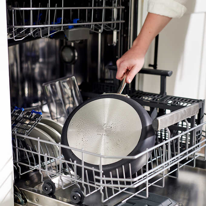 Our All-Clad 3 Pc. Hard Anodized Fry Pan Set is a classic kitchen staple. Ideal for cooking at high heat, flipping and tossing foods is a snap, thanks to the flat base and flared sides. This product is constructed of heavy gauge hard anodized aluminum and its interior is engineered with 3 layers of our high performing, non-stick coating. This coating keeps food molecules from clinging to the surface, so it’s ideal for delicate or sticky foods. Its exterior features an anti-warp magnetic stainless steel base that makes it compatible with induction cooktops and increases durability. All in all, it offers professional performance and durability combined with easy food release that’s easy to clean for a convenient cooking experience. The set includes an 8-inch pan with a petite, space-saving profile that’s perfect for quick bites, a 10-inch pan that offers plenty of room for full, filling dishes, and a 12-inch will come in handy when you have larger groups or want leftovers. Once you’re done cooking, simply put it in the dishwasher or give it a quick hand washing to wrap up.