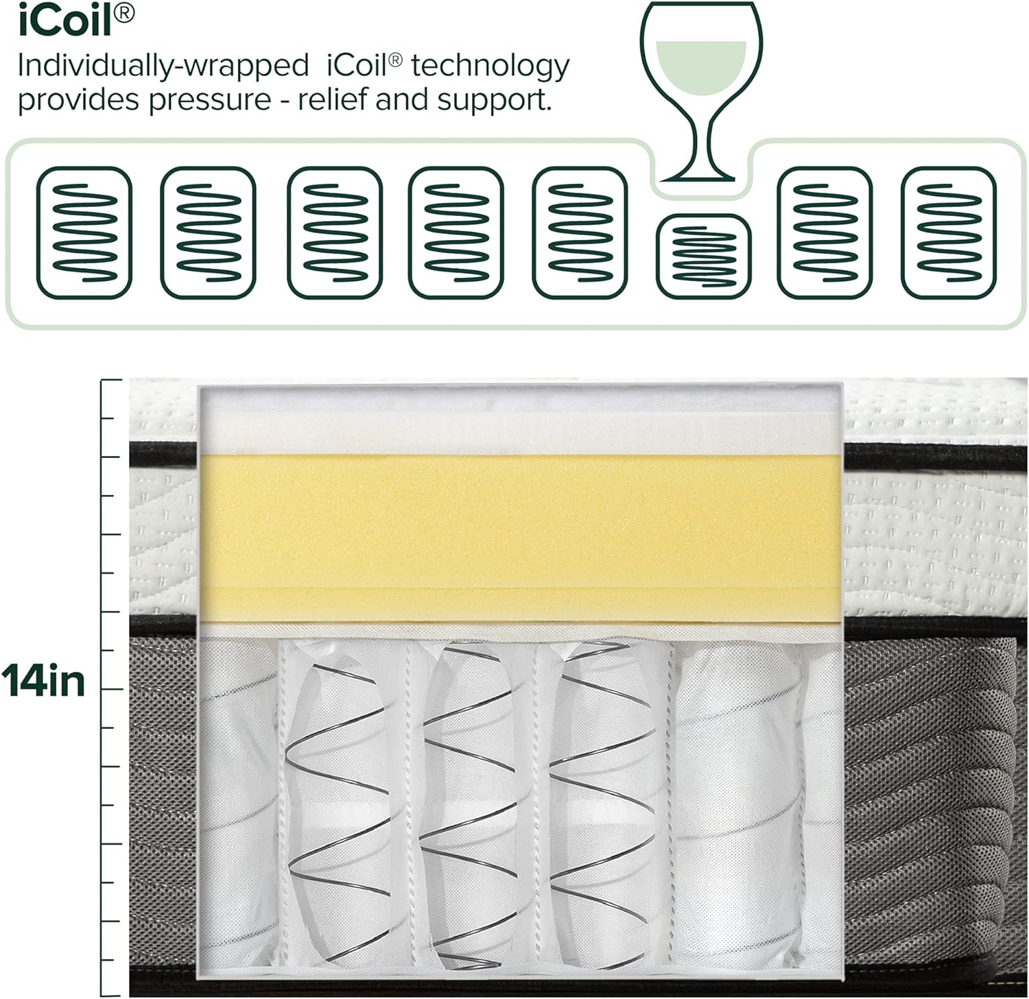 NEW - ZINUS 14 Inch QUEEN Support Plus Pocket Spring Hybrid Mattress, Extra Firm Feel - Retail $388