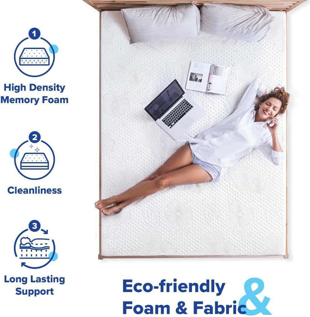 [ Dimensions ] - 80 x 60 x 10 inches, [ 4 Layers ] - 1.5" I-Gel Memory Foam + 1.5" HD Foam + 2.5" Convoluted HD Foam + 4.5" HD Foam, [ Temperature Regulating ] - I-Gel memory foam disperses body heat and regulates temperatures, creating a pleasant sleeping experience while maintaining the right body temperature, [ Pressure Relieving ] - Responsive, medium firm, foam layers adapt and conform to unique body contours, providing optimal comfort while targeting all pressure points, [ Stable Support ] - Durable high density foam guarantees stable support through excellent motion transfer and uniform weight distribution, [ Premium Cover ] - Polyester spandex blue jacquard fabric resists wrinkles and enhances flexibility & durability, ensuring the CertiPUR-US certified mattress is both breathable and protected against moisture, dust and debris, [ Bed-in-a-Box ] - Smart shipping & delivery with vacuum-sealed packaging technology. Please allow the product to rest in room temperature for 72 hours to fully expand and recover