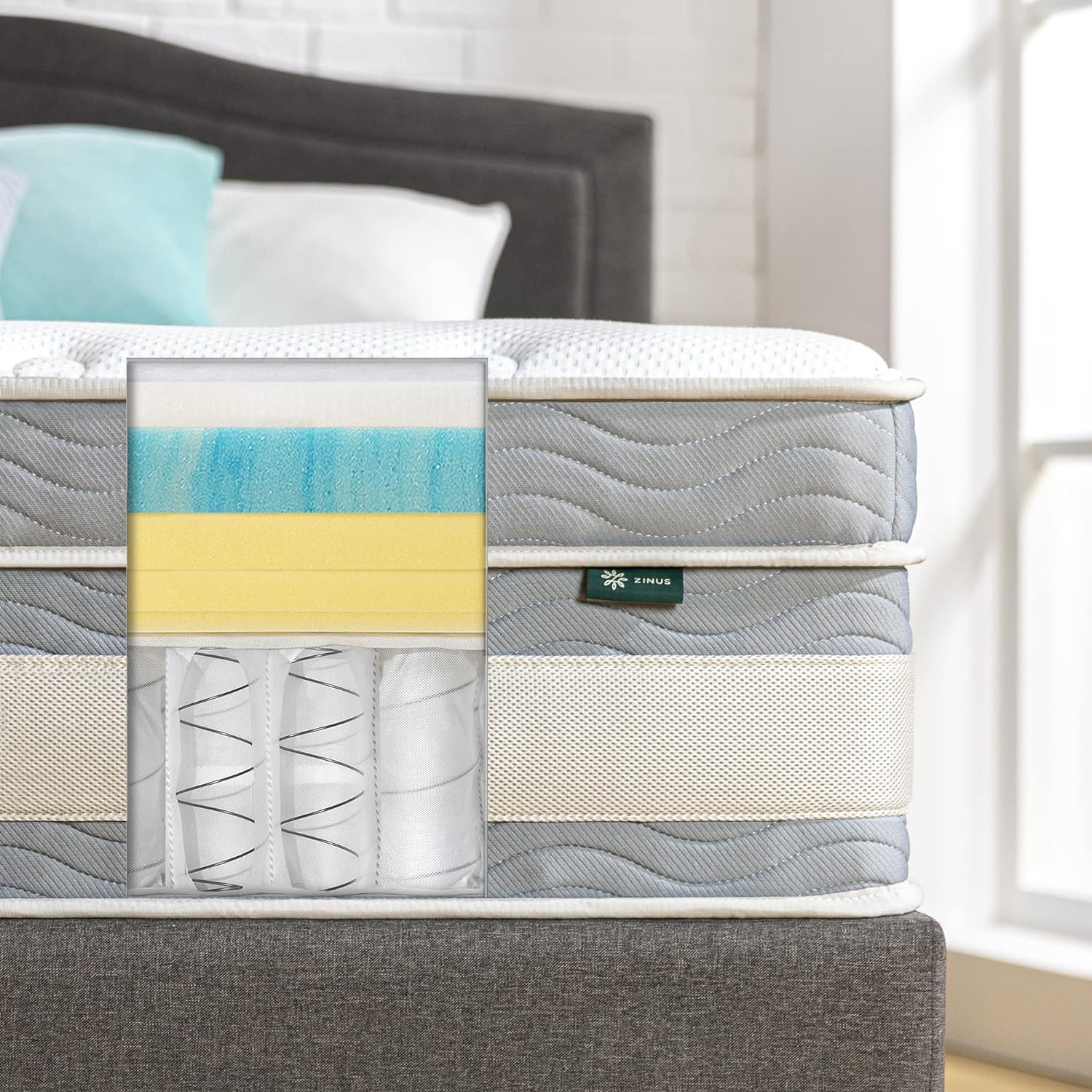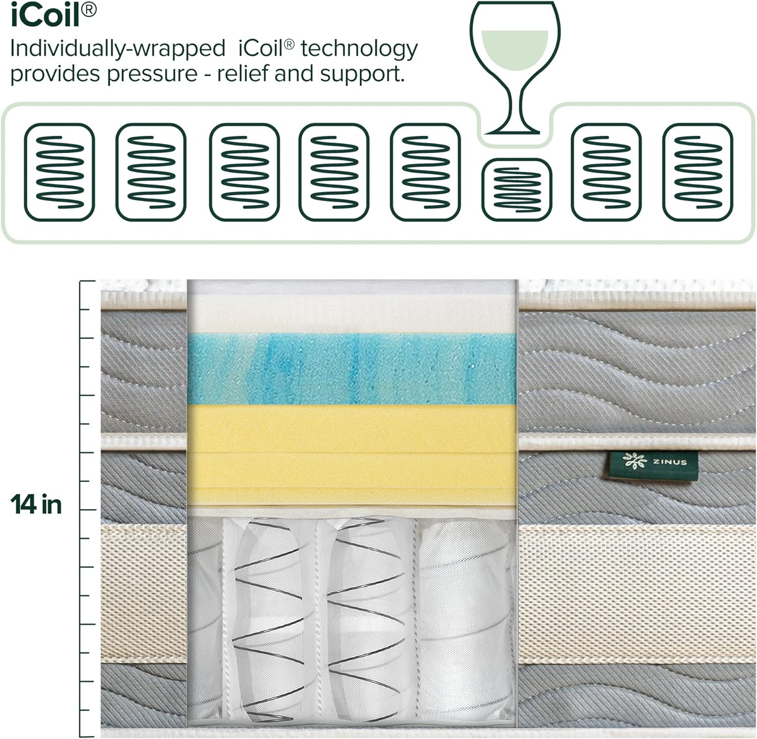 NEW - ZINUS 14 Inch Comfort Support Cooling Hybrid Quilted Mattress, Pocket Innersprings for Motion Isolation, Edge Support, Queen, White - Retail $484