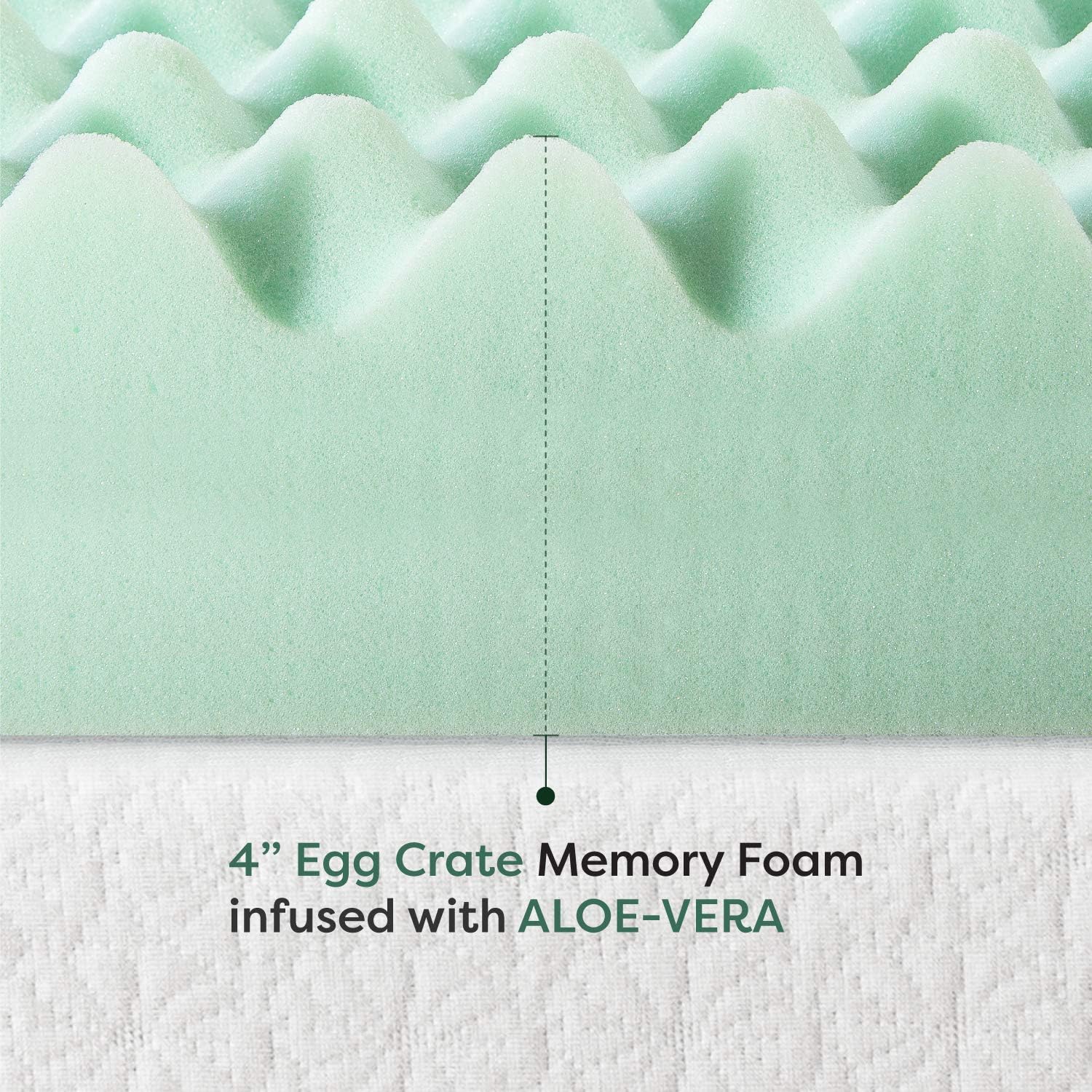 NEW - Best Price Mattress 4 Inch Egg Crate Memory Foam Mattress Topper with Calming Aloe Infusion, CertiPUR-US Certified, Full, Green - Retail $96