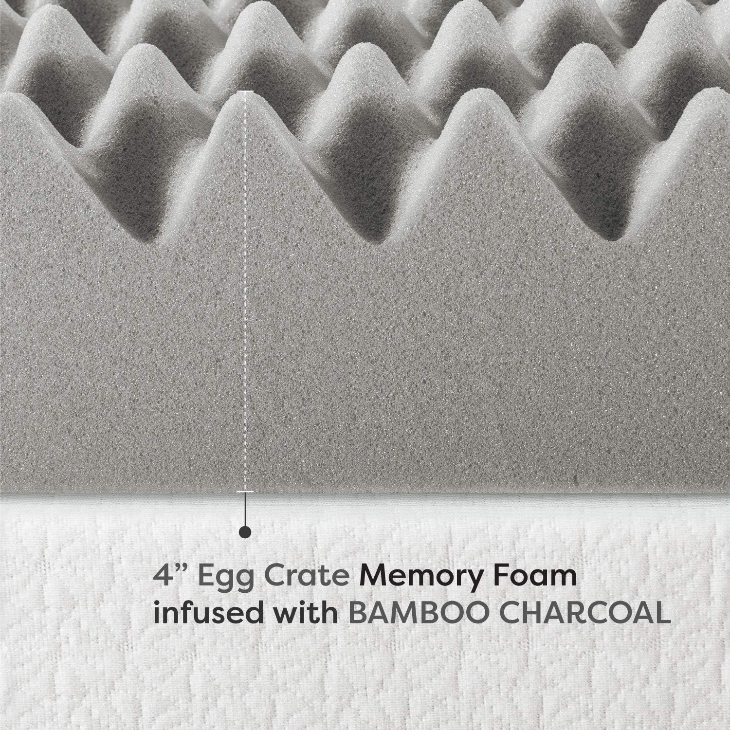 NEW - Best Price Mattress Mellow FULL 4 Inch Egg Crate Memory Foam Mattress Topper with Infusion, Charcoal Grey - Retail $81
