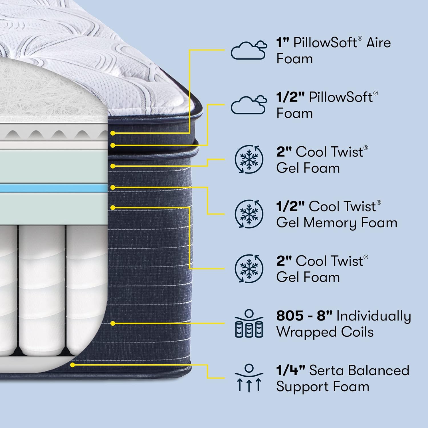- Utilizes Serta's Cool Twist Gel Foam: a cooling gel is swirled directly into breathable foam that is designed to promote airflow and heat dissipation.