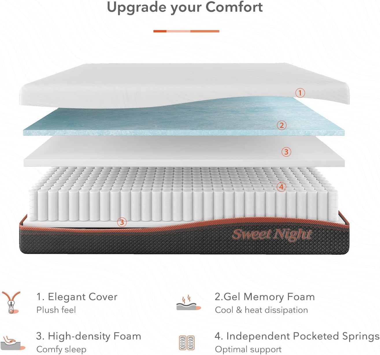 NEW - Sweetnight 8” QUEEN Hybrid Mattress with Gel Memory Foam & Pocket Innerspring for Cool Sleep & Spine Protection, Bed Mattress with Moisture Wicking Adaptive Cover, Medium Firm - Retail $199