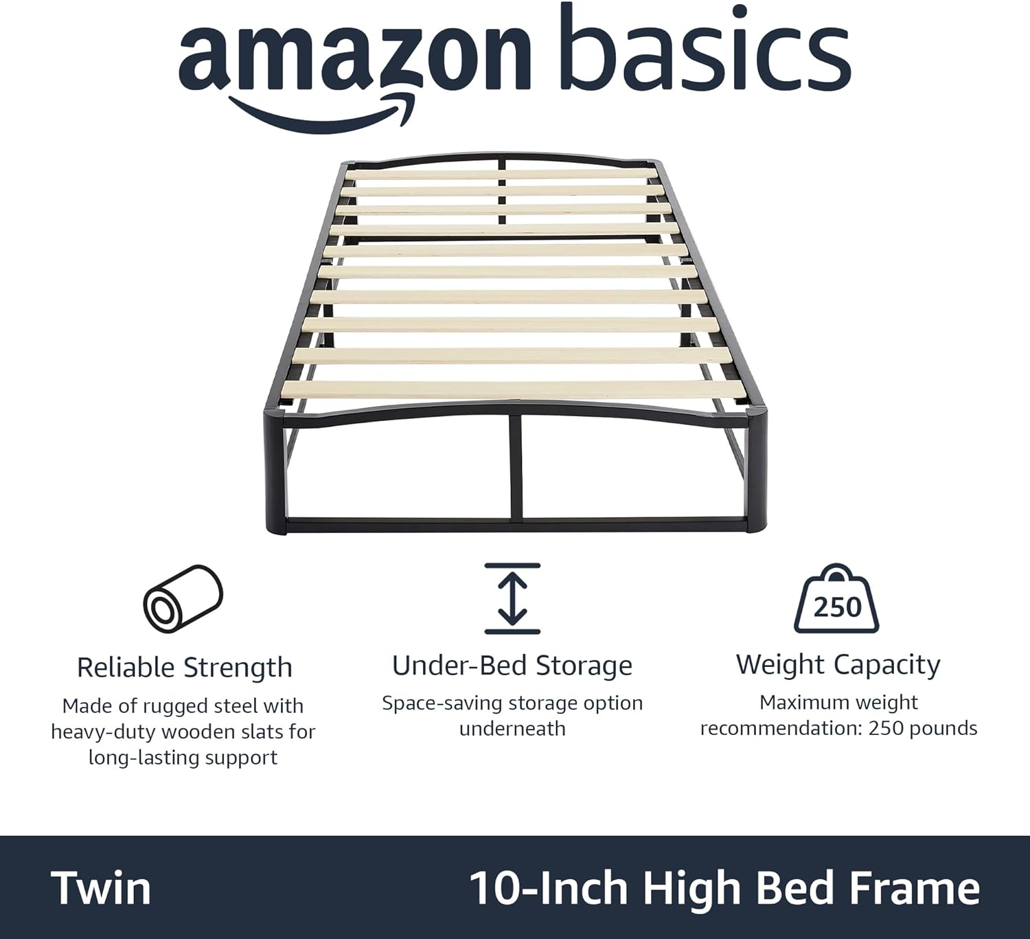 NEW - Amazon Basics Twin Metal Platform Bed Frame with Wood Slat Support, 10 Inches High, Black - Retail $106