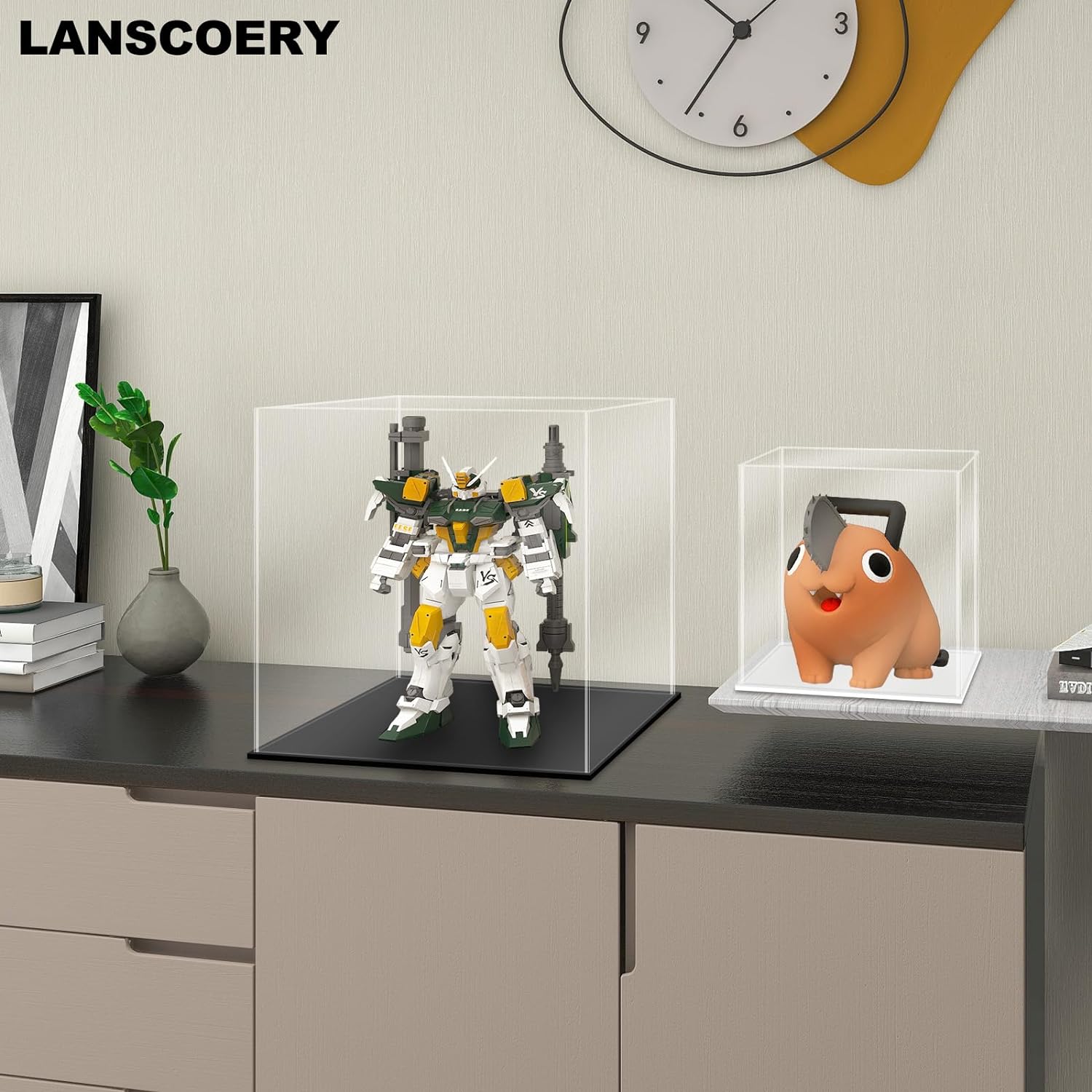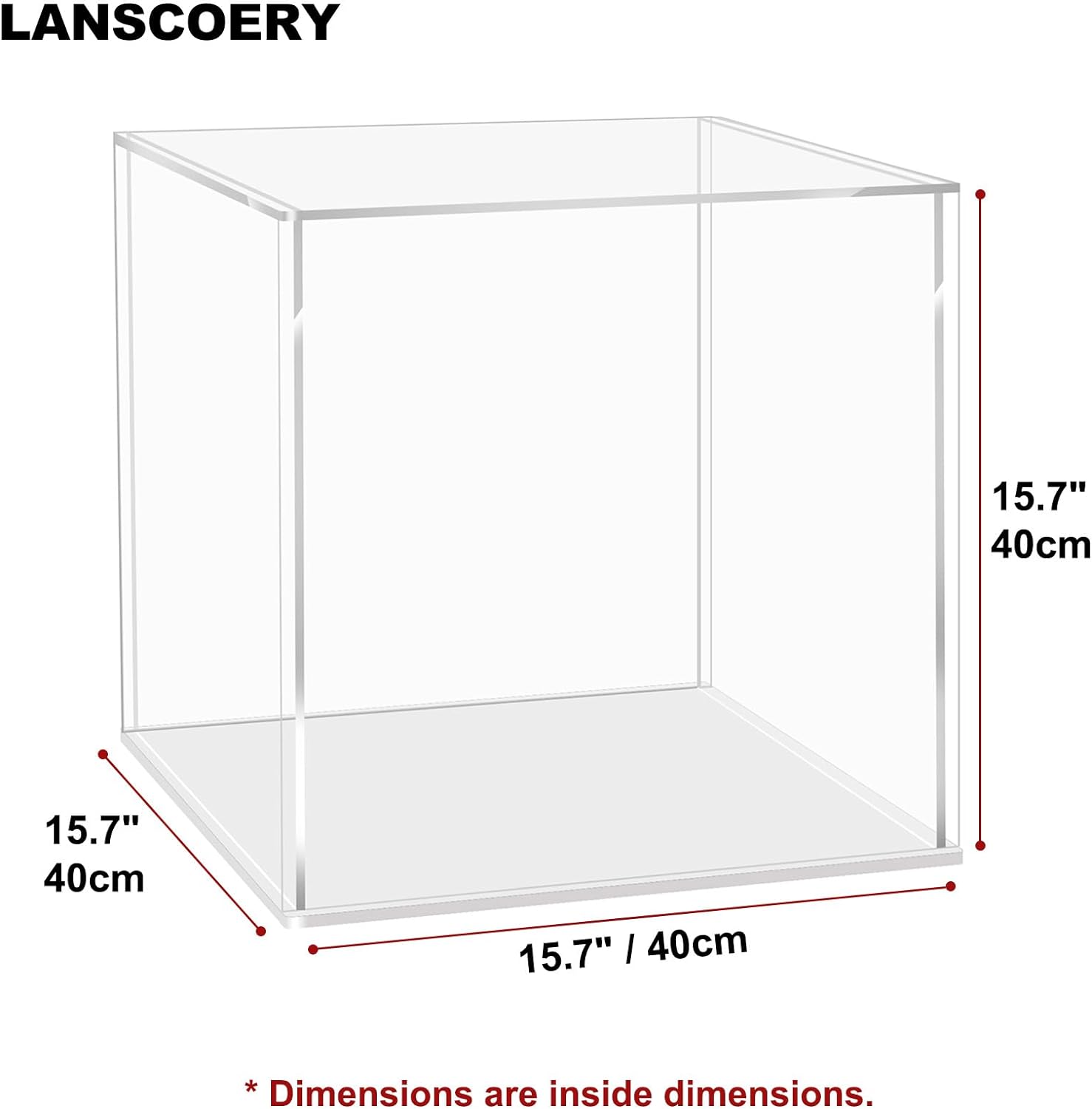NEW - LANSCOERY Clear Acrylic Display Case, Assemble Cube Display Box Stand with White Base, Dustproof Protection Showcase for Collectibles Memorabilia Figurines (15.7x15.7x15.7inch; 40x40x40cm) - Retail $88
