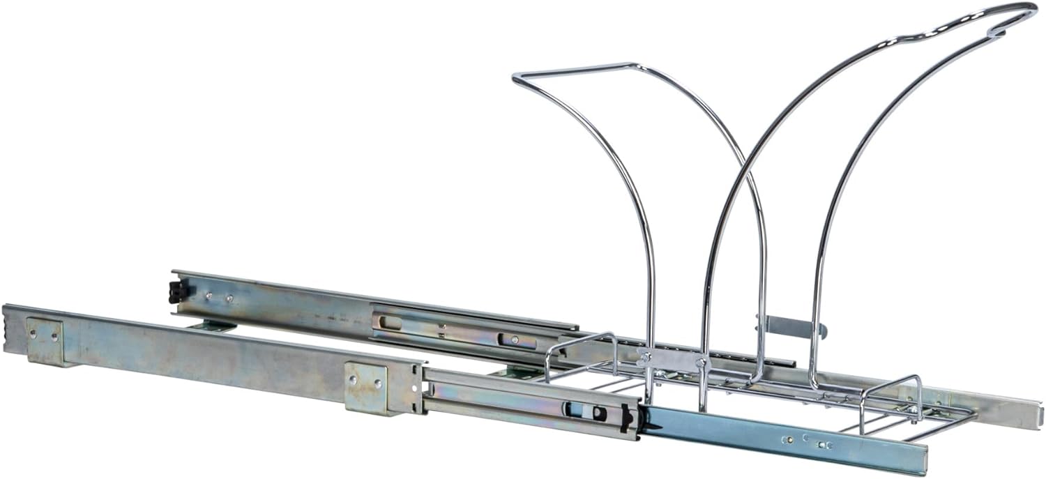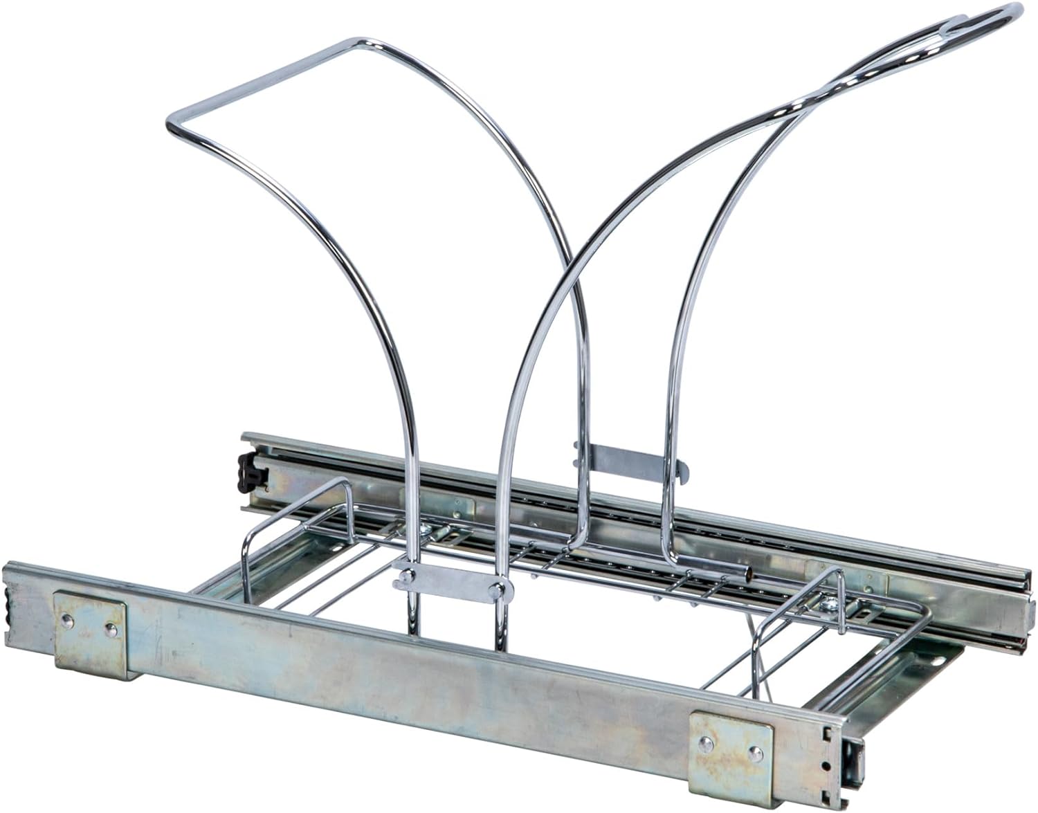 NEW - Household Essentials Glidez Chrome-Plated Steel Pull-Out/Slide-Out Discreet Single 5 Gallon Plastic Trash Can for Under Cabinet Use - Fits Standard Size Cabinet, Chrome and White - Retail $53