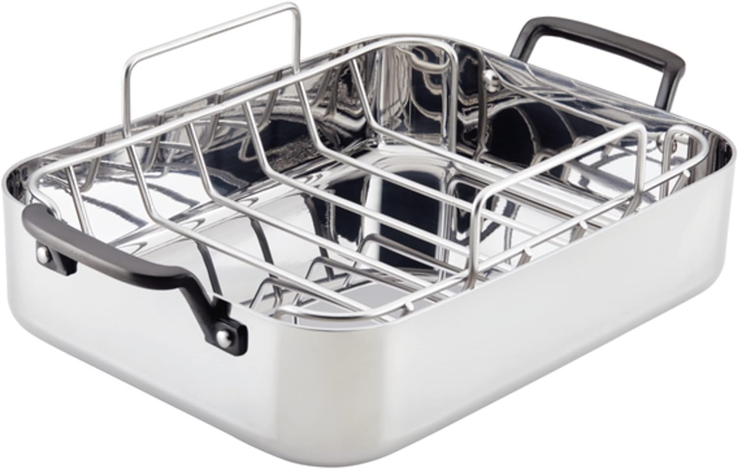 NEW - KitchenAid 5-Ply Clad Roasting Pan/Roaster with Removable Rack, 15 Inch x 11.5 Inch, Polished Stainless Steel - Retail $149