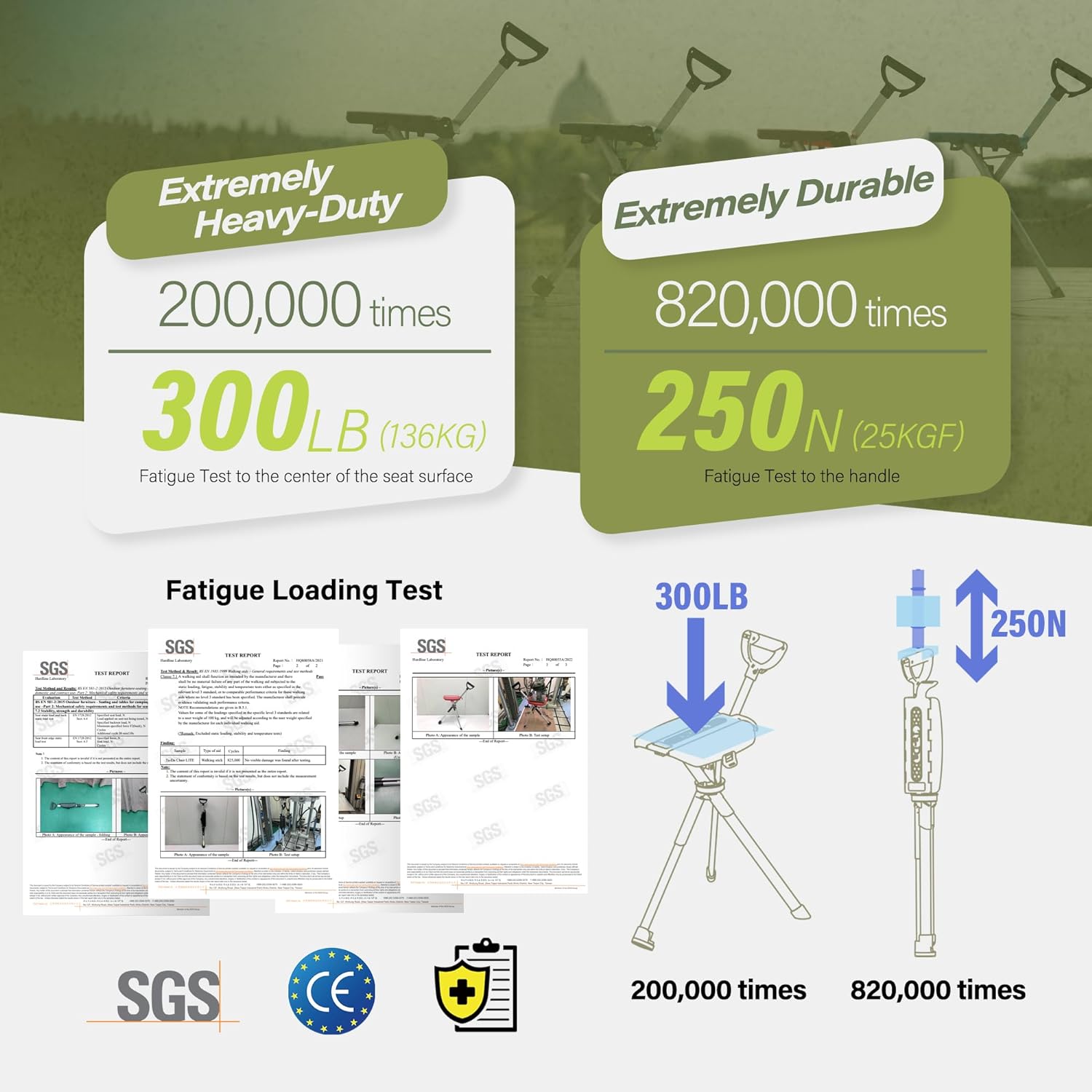 - LIGHTWEIGHT DURABILITY: Aircraft-grade aluminum material weights less than 2.2 lbs. Easy carry and storage. The Max. weight capability for seat is up to 300 lbs. (136kg). Stick Height: 32.2”; Suitable height within 4'11" - 5'4". Stick Height: 34.2"; Suitable height within 5'5" - 5'10". Stick Height: 36.2"; Suitable height within 5'11" - 6'5".
