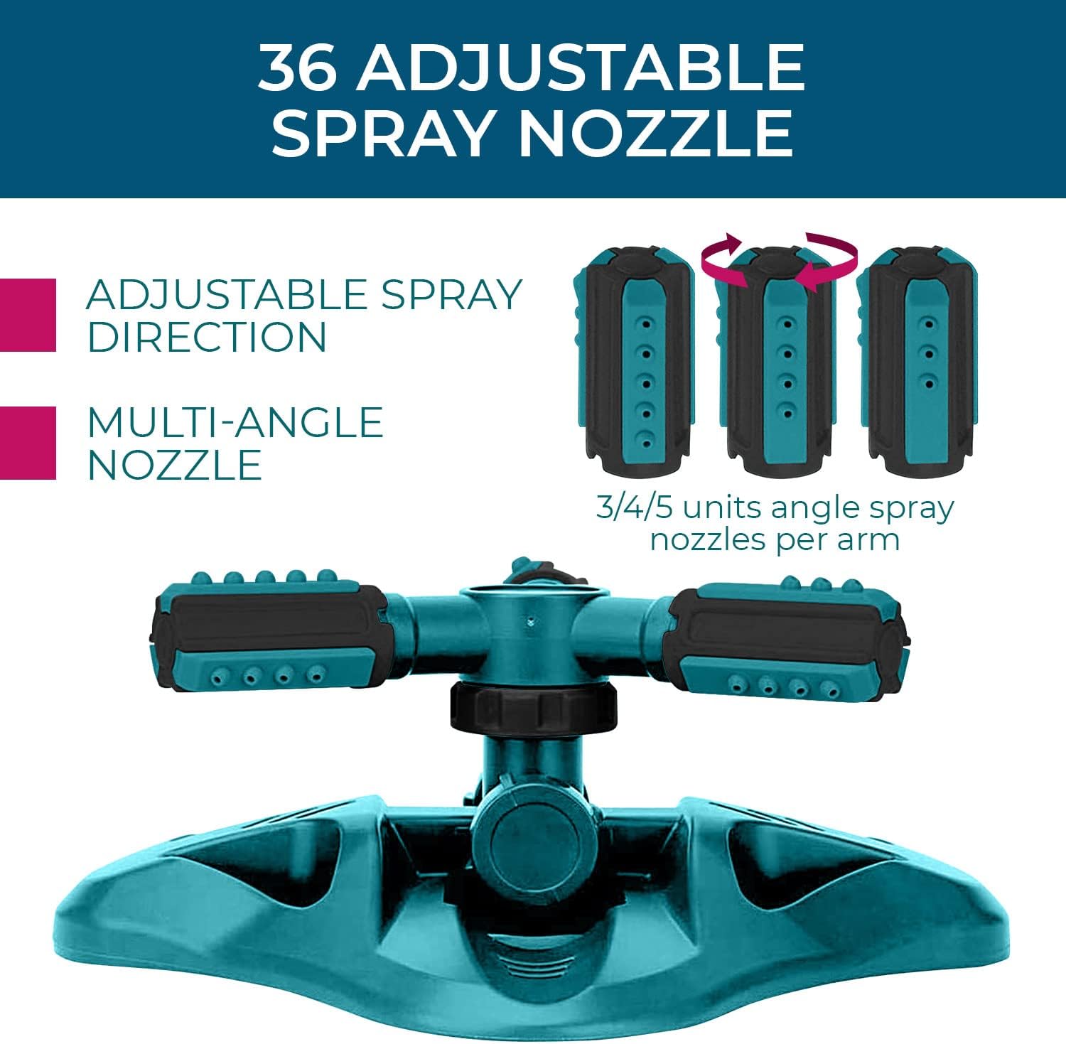 - Heavy Duty Base Stabilizer: Carefully designed weighted base will secure the garden sprinkler and prevent it from moving around when water pressure is applied.