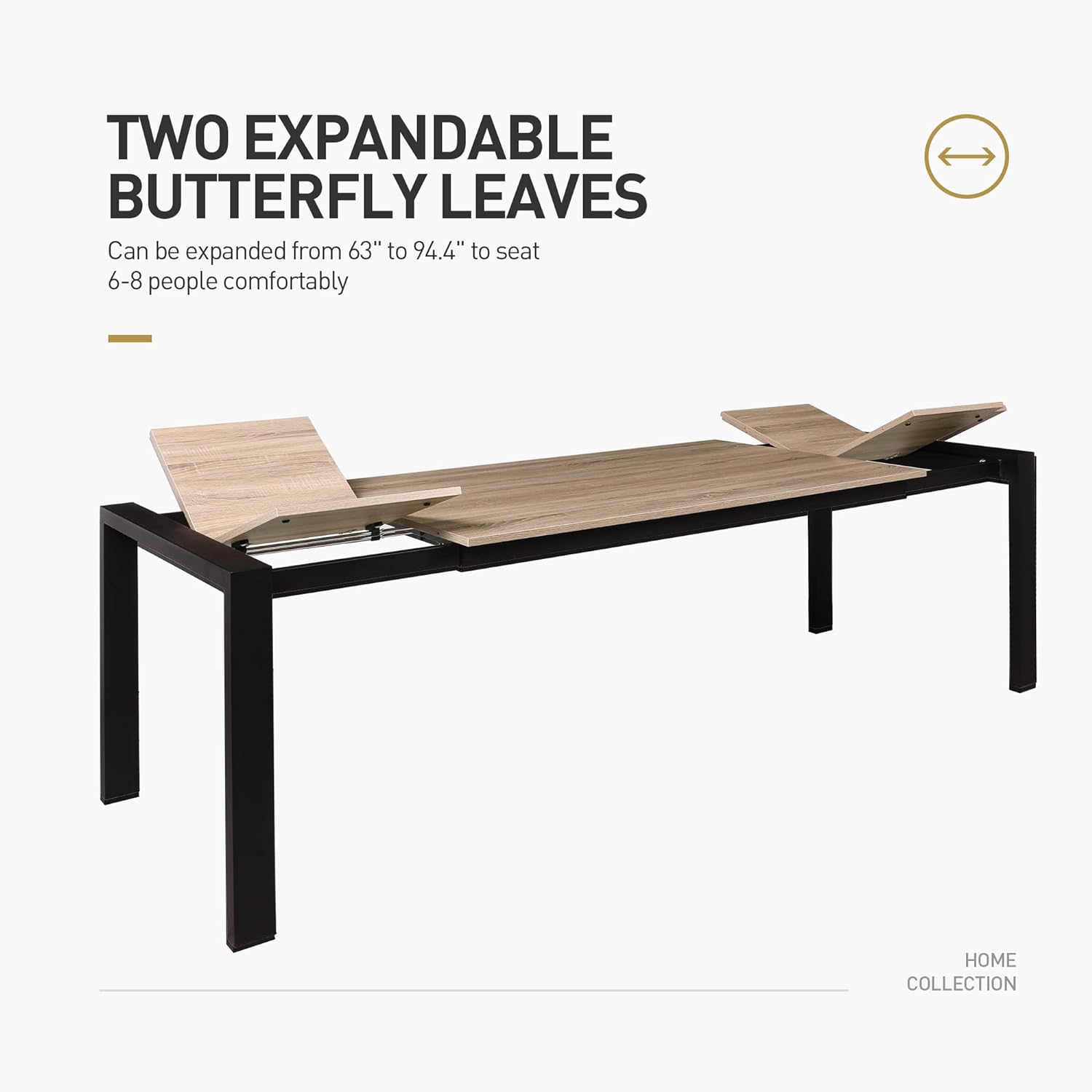 - Dining Table for 6-8-This extension dining table is fitted with two expandable butterfly leaves, it can be expanded from 63" to 94.4" to seat 6-8 people comfortably. Elevate the look of your dining space with Acanva kitchen table, the extended function of this dining room table makes entertaining a breeze.