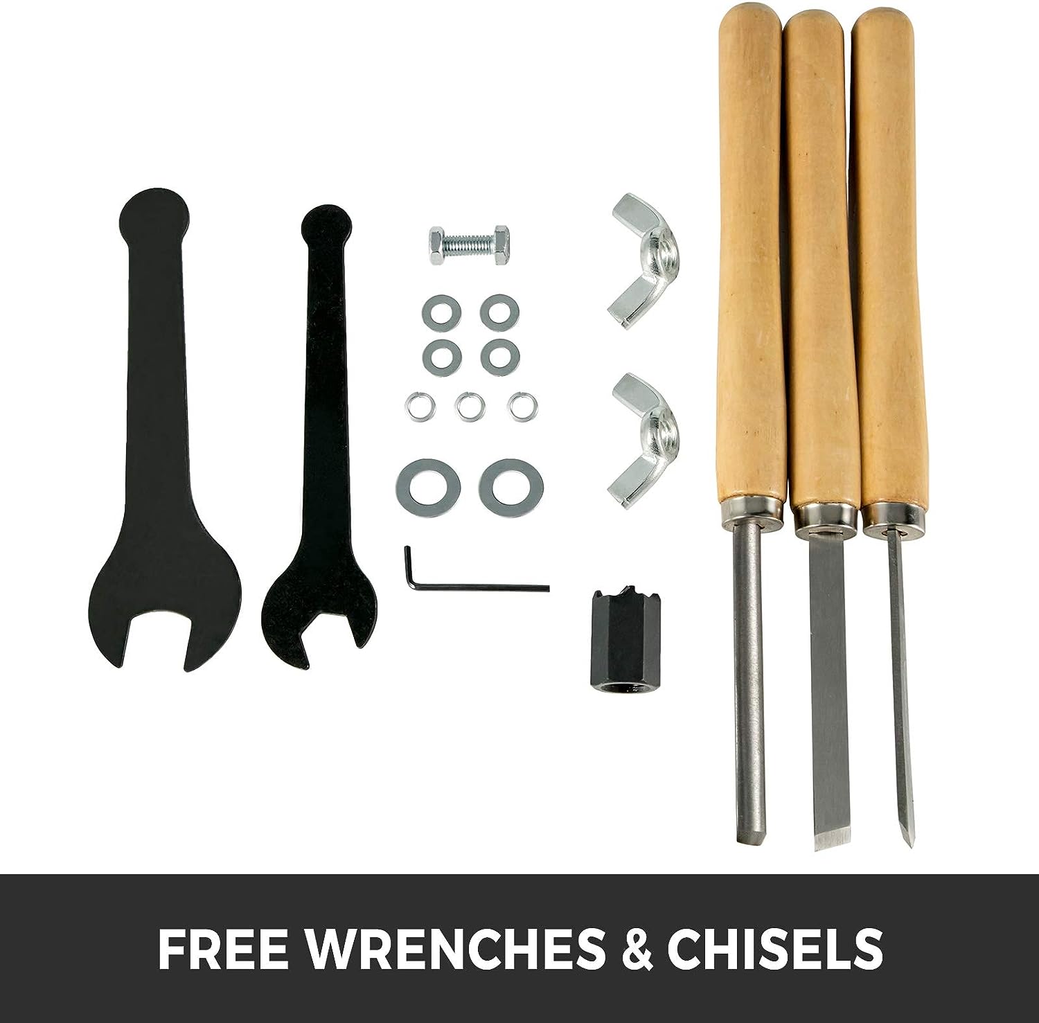 - Wrenches & Chisels: 3 wrenches are for easy using and maintainance. 3 chisels provided also, 1 x Skew Chisel, 1 x Shear Scraper and 1 x Spindle Gouge.
