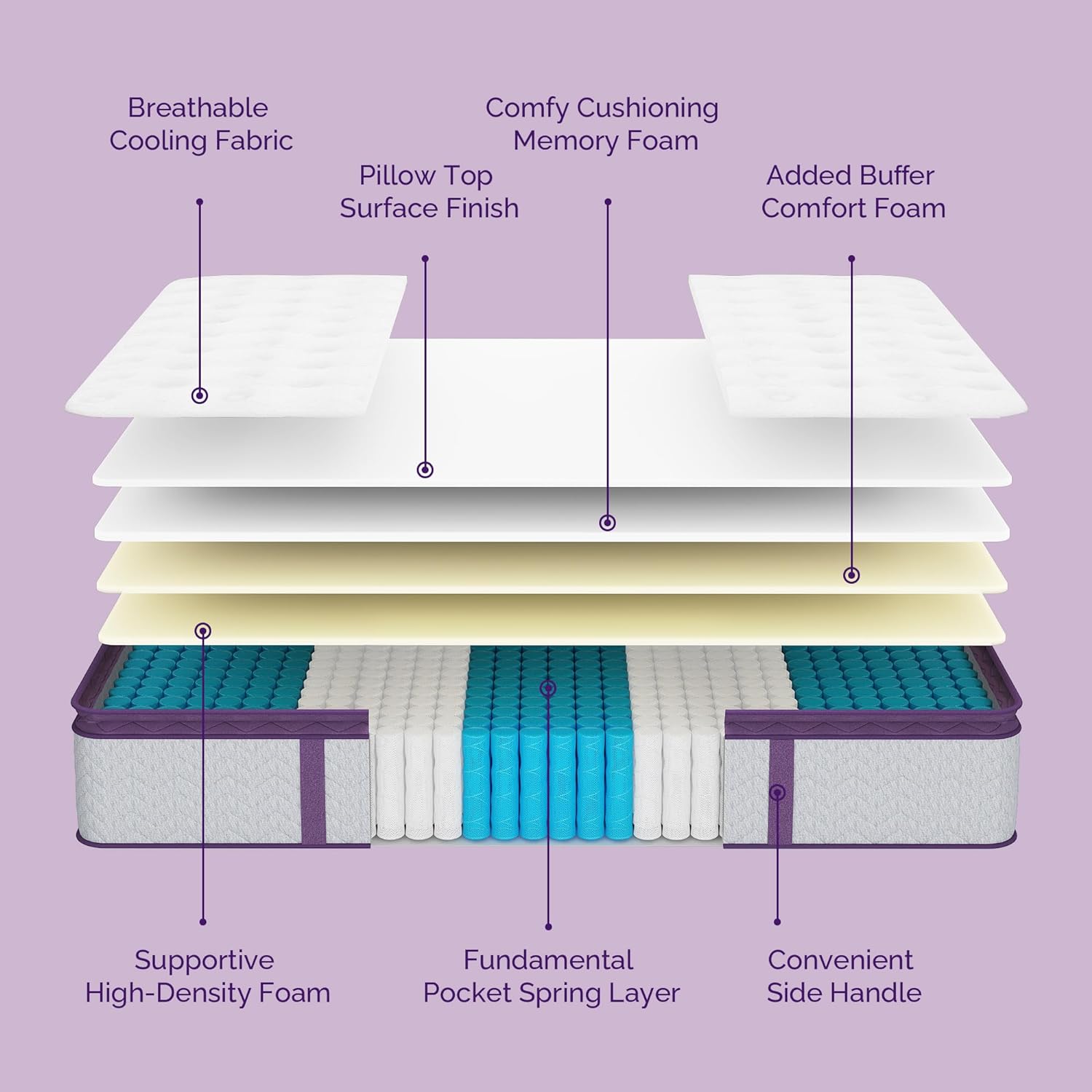 - 5-ZONE MOTION ISOLATION-POCKETED SPRING & EDGE SUPPORT - An Independent Coil System base layer encased with Foam Edge Support resists motion transfer from a sleeping partner and promotes customized spinal alignment and joint pain relief. The 5-zone surrounded by pocketed springs at its edge. The premium tempered steel coils makes the mattress bouncy yet supportive, adapts to the size and weight of any body, supports a greatest weight of more than 500 lbs.