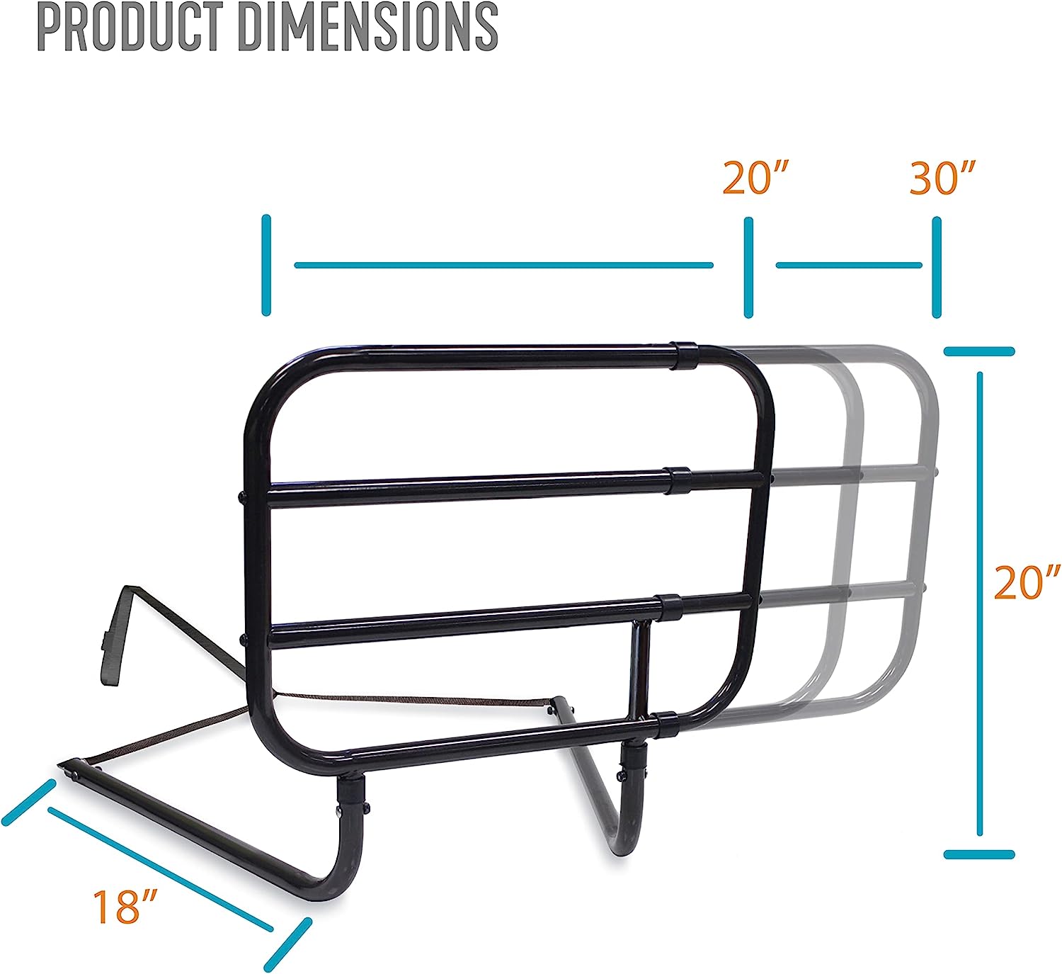 - Prevent Falls: Easily adjust the Extend-A-Rail in length from 20 to 30 inches with the push of a button, keeping you or your loved one safe from late night falls