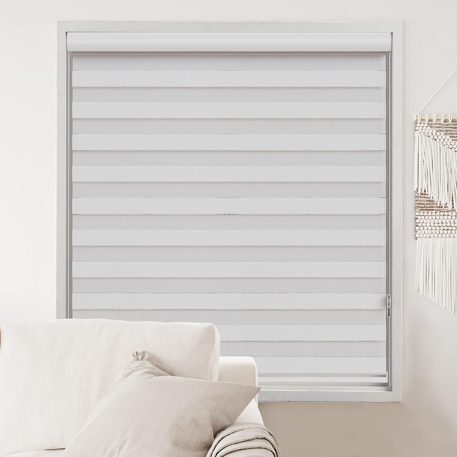 - Modern Design: Made in Turkey with 100% Breathable Polyester Sheer Zebra Roller Shades Blend Contemporary Style With Easy Installation. Sheer White Zebra Shades Are A Great Alternative To Blackout Curtains. Zebra Window Coverings Are A Type Of Window Treatment That Gives You The Ability To Control Daylight And Privacy With The Simple Pull Of A Cord And Can Be Positioned At Different Levels To Create A Range Of Light, Visibility, And Privacy To Your Liking.