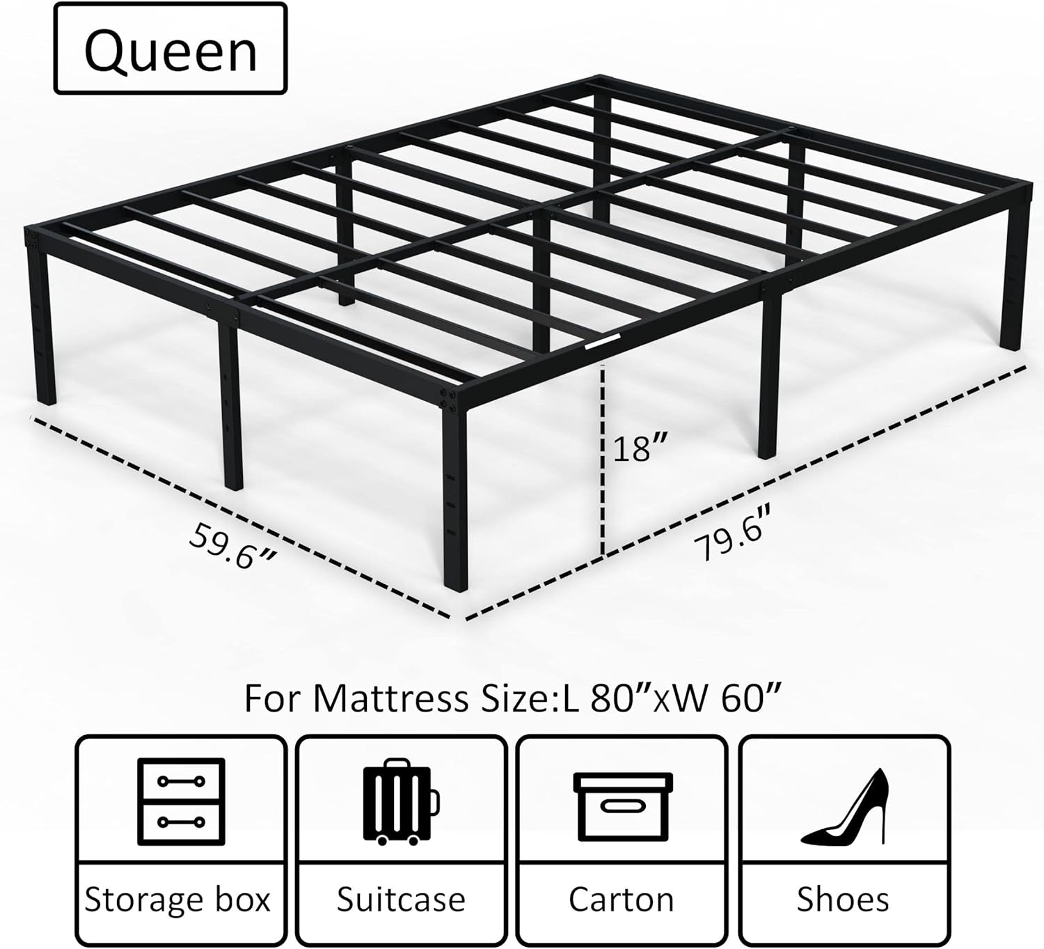 NEW - EMODA Queen Bed Frame No Box Spring Needed 18 Inch Heavy Duty Metal Tall Platform Bed Frame Queen Size with Large Storage Space, Easy Assembly, Black - Retail $149