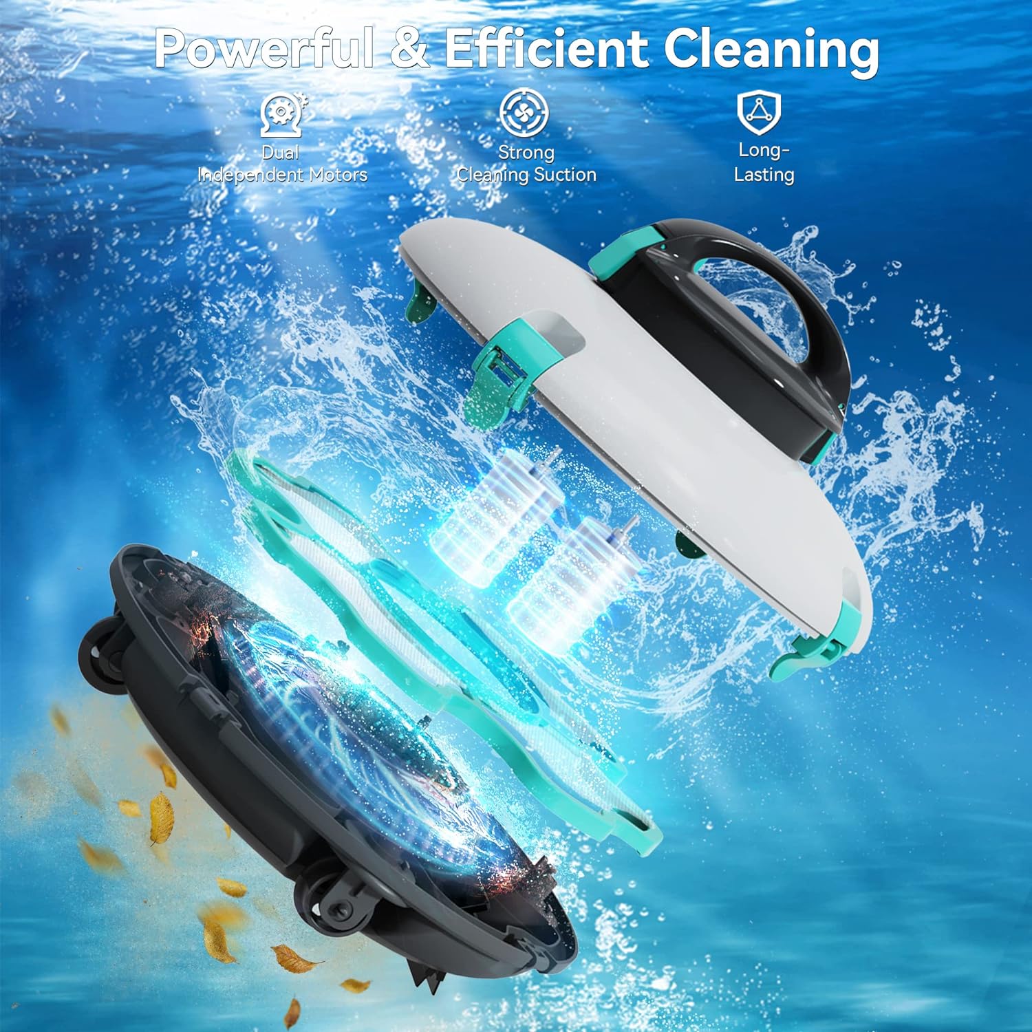 NEW - Lydsto Cordless Robotic Pool Cleaner, Automatic Pool Vacuum, Dual-Motor, Stronger Power Suction, Self-Parking, Ideal for Inground or Above Ground Pools Green - Retail $172