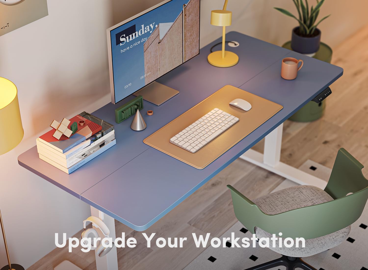 NEW - FEZIBO Electric Standing Desk, 55 x 24 Inches Height Adjustable Stand up Desk, Sit Stand Home Office Desk, Computer Desk, Blue - Retail $210