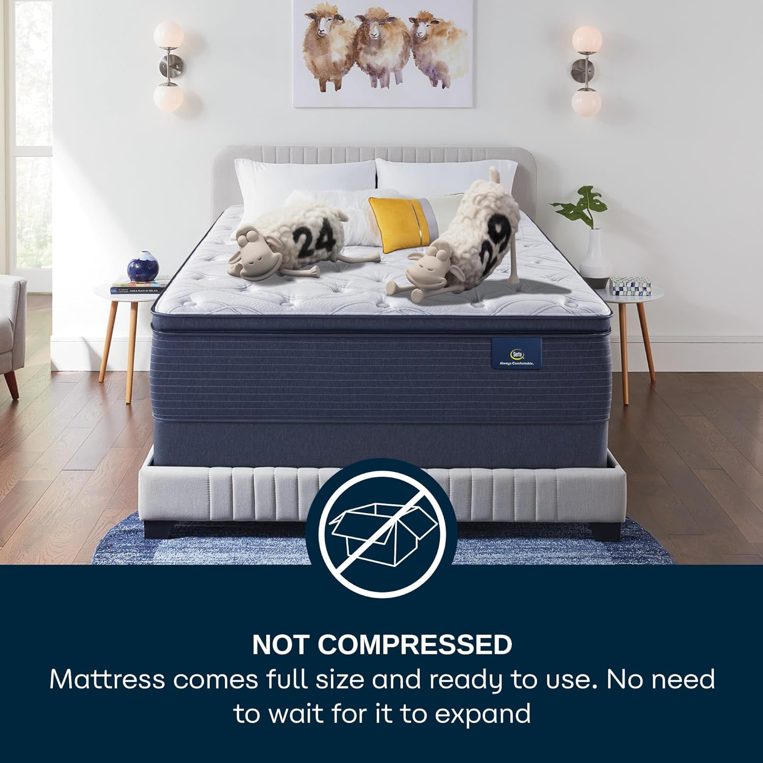 NEW - Serta Cal King - 15" Clarks Hill Elite Plush Pillow Top Cal King Mattress, Comfortable, Cooling, Supportive, CertiPur-US Certified,White/Blue - Retail $899