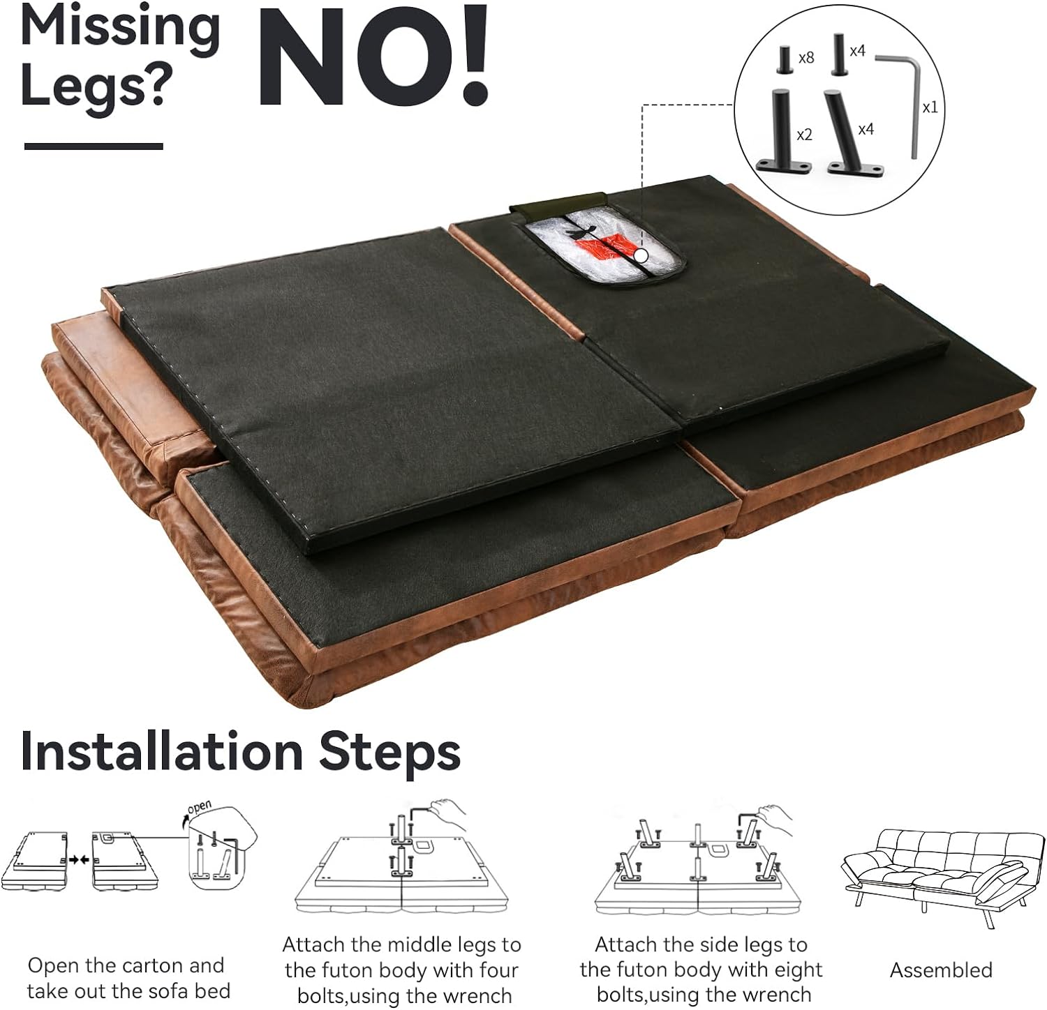 - 【HIGH QUALITY MATERIALS】: Our sofa bed is filled with 2.5" memory foam and supportive cotton padding, which is soft and non-collapsing, and can distribute pressure to improve your sleeping comfort. Premium faux leather is soft to the touch and not easy to deteriorate, the classic and stylish brown color makes the sofa blend perfectly with your living room, you will enjoy a comfortable experience for years to come.