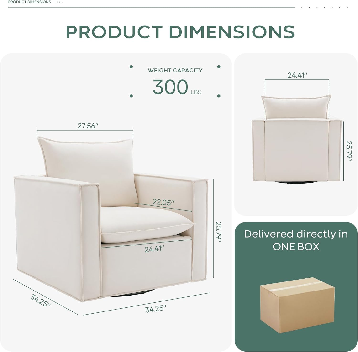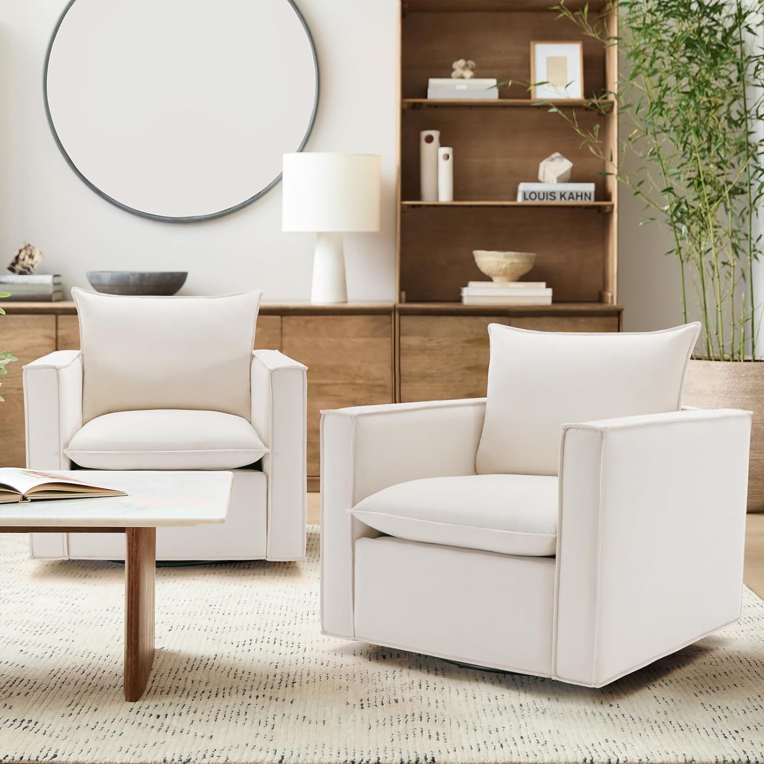 NEW - Swivel Accent Chair Set of 2,34'' Wide Upholstered Arm Chair with Plump Back Pillow, Modern Sofa Living Room Chair for Bedroom, Corner, Reading Nook-Classic Beige - Retail $499