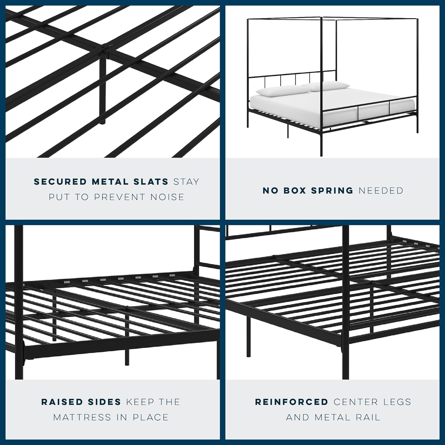 NEW - Novogratz King Marion Canopy Bed Frame, Black, King - Retail $183