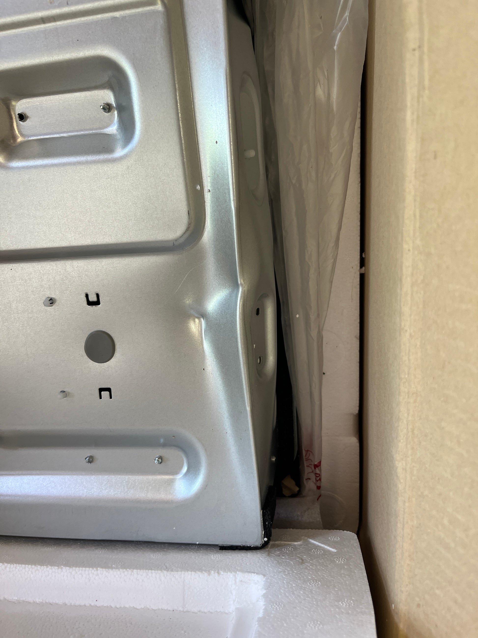 There is a dent on the bottom of the range as shown in the photos.
