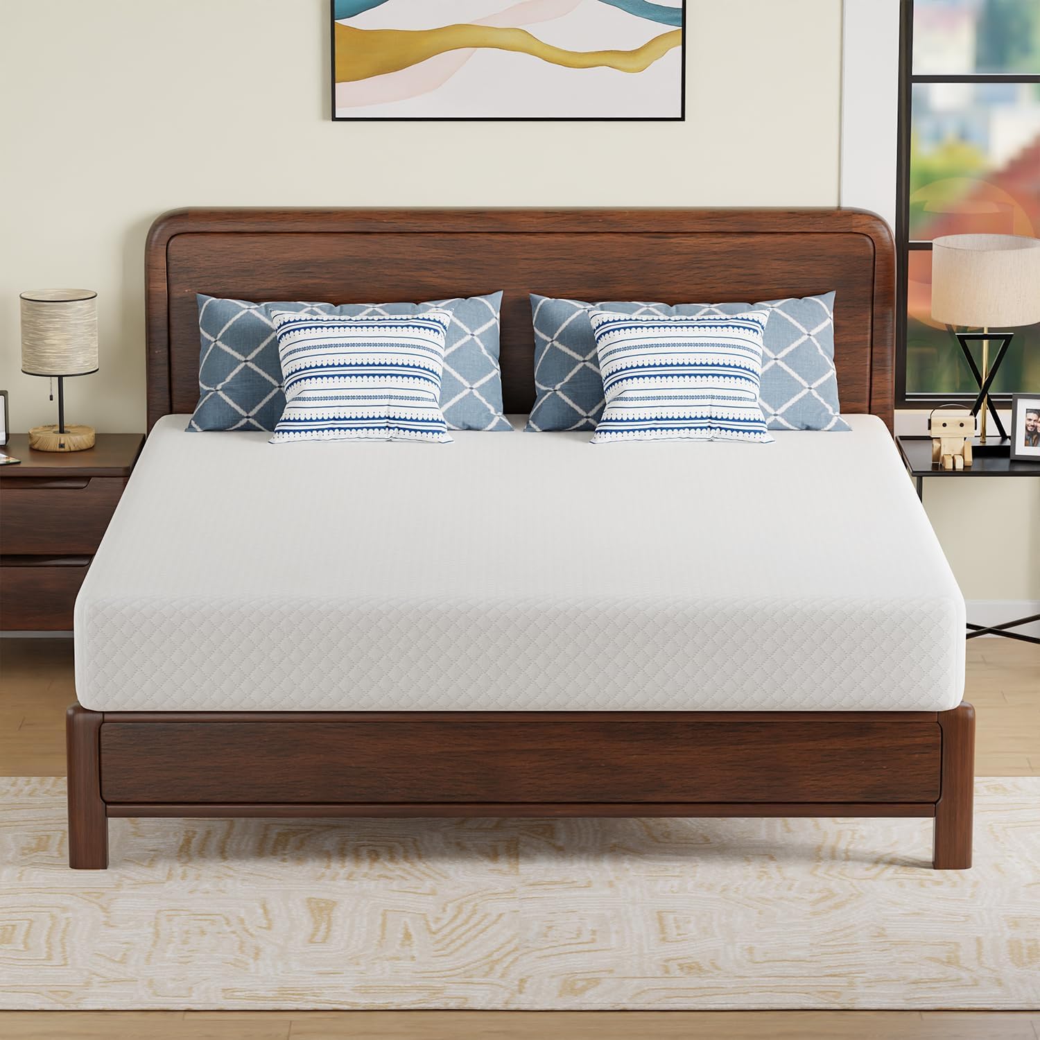 - ☎-【MATTRESS IN A BOX & FITS ALL BED FRAMES】- Such fun to receive a mattress that’s rolled and compressed in a box . Follow the instructions and see how the magic happens. It is easy to set up and fits all kinds of queen bed frames, even on the floor. Mattress is recommended 72 hours for air out and reshape.