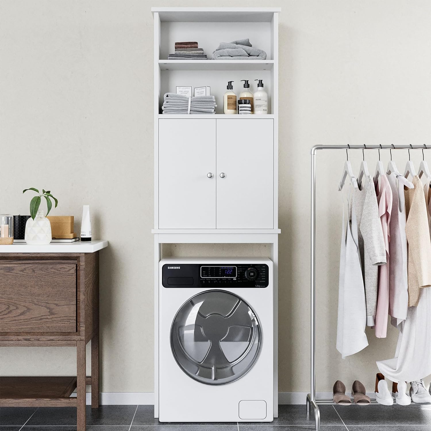 Shintenchi Over The Toilet Storage Cabinet, Bathroom Above The Toilet Rack, Bathroom Adjustable Shelf Organizer with Open Bottom Bar and Anti-Tip Device, White - Retail $81