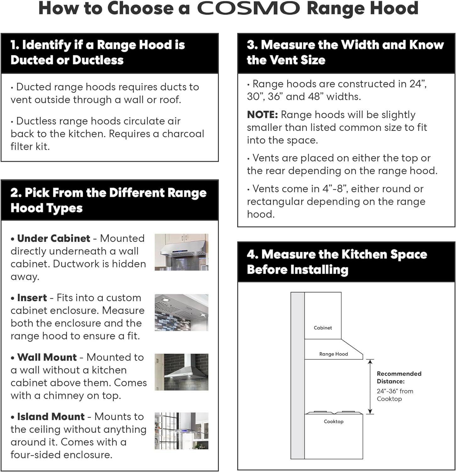 - Built with cutting edge technology and with the utmost of care, Cosmo brings you beautiful premium range hoods at an affordable price. Expect cooking and cleaning experiences that make life easier, brighten up your kitchen, and protect your health.
