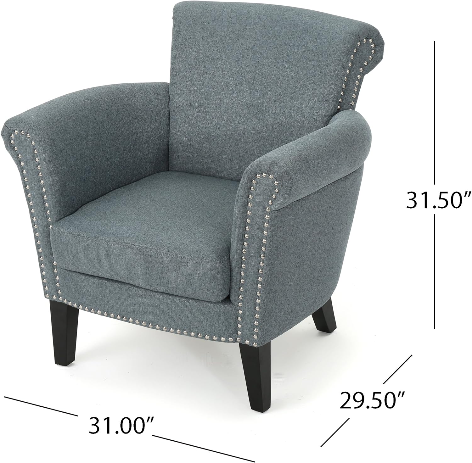 NEW - Christopher Knight Home Brice Vintage Scroll Arm Studded Fabric Club Chair, Steel Blue / Dark Brown - Retail $200