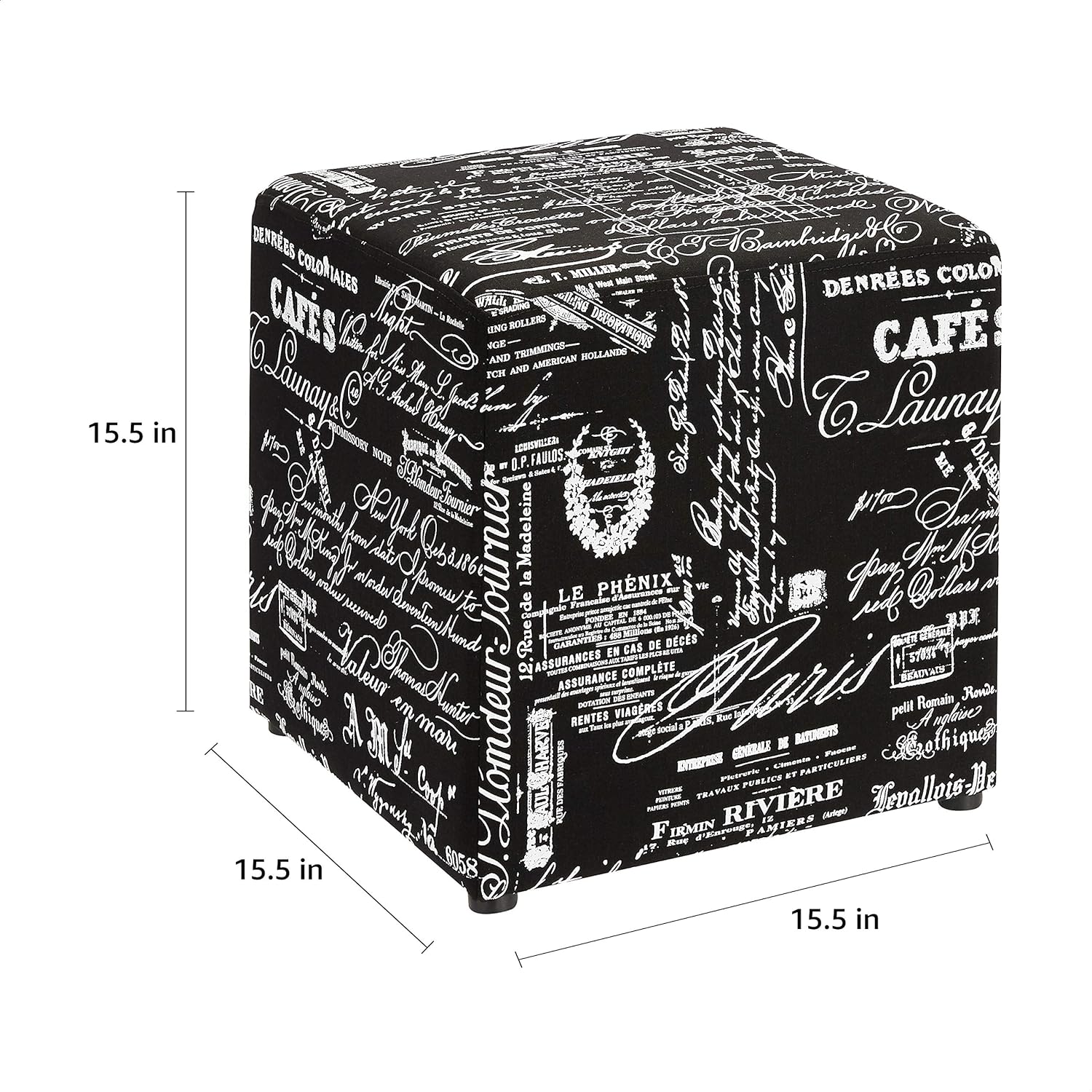NEW - FIRST HILL FHW Square Fabric Stores Ottoman Style Patterns,Black & White Script Pattern Fabric - Retail $34