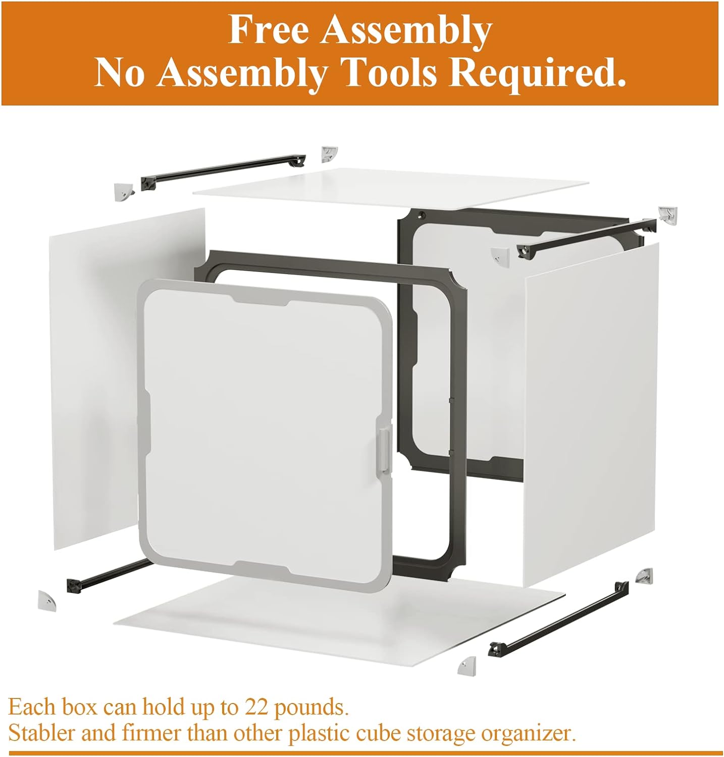 - 【4-Cube Storage Shelf】 Each storage cube measures 13” x 13” x 11.8”, providing roomy storage space. And each cube box is self-contained, you can use them separately or assemble the cube storage organizer according to your own needs. Easy assembly in few minutes with detailed installation manual and video provided, no assembly tools required.