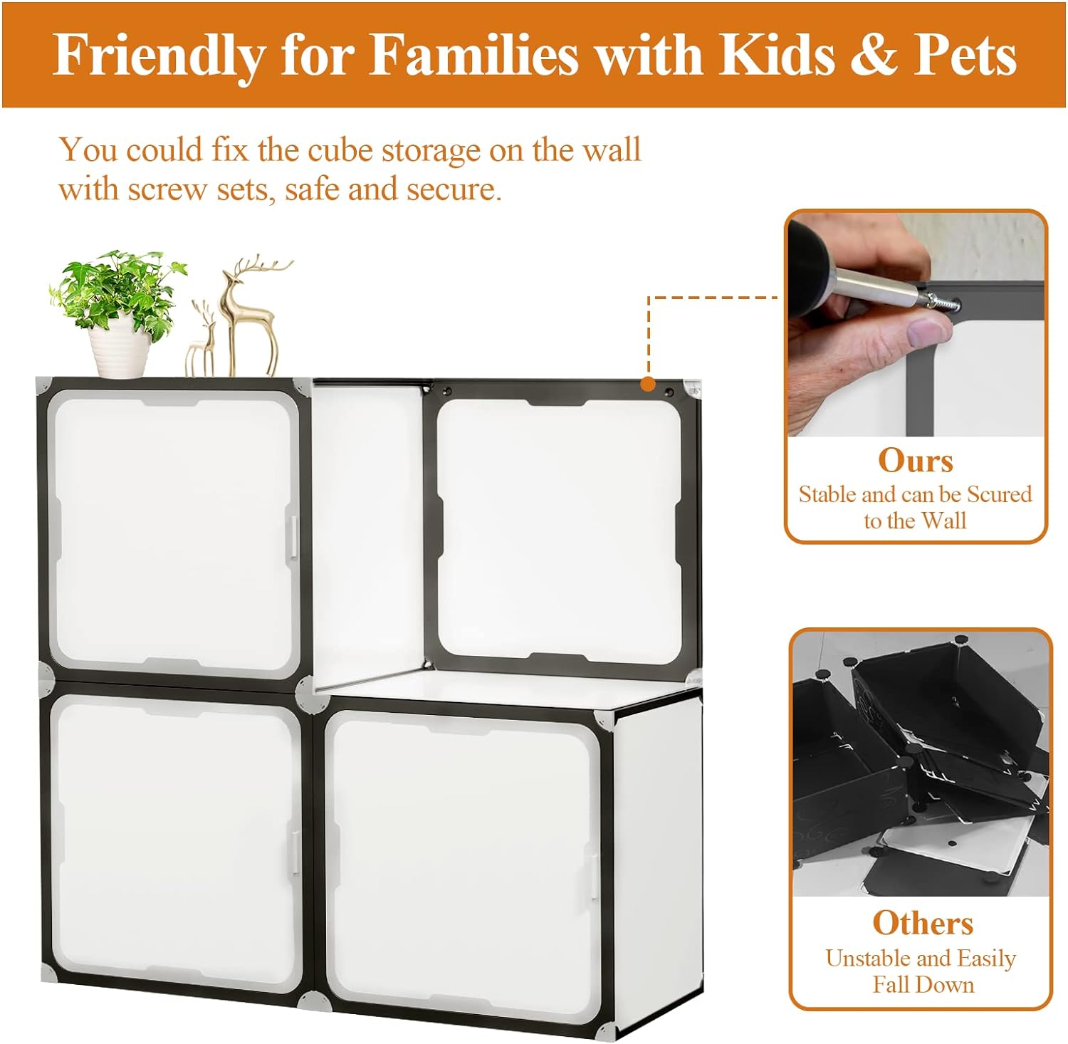 - 【Protect Your Families】 Eco-friendly non-toxic material is perfect for children, teens and adults. Feel free to place the storage organizer anywhere. You could fix the cube storage on the wall with screw sets, safe and secure. The anti-tipping design can prevent incidents, friendly for families with kids.