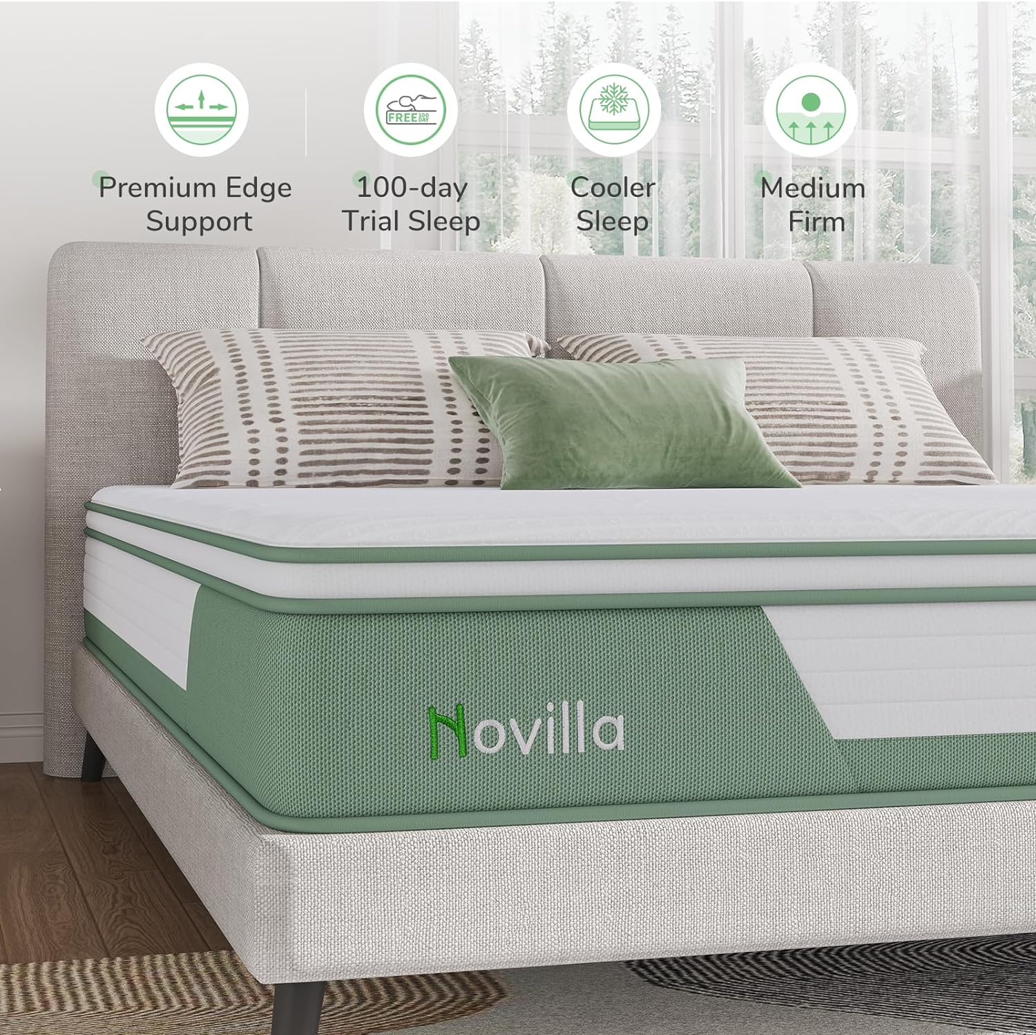 - ENHANCED SUPPORT WITH 5-ZONE SPRING: Novilla queen size mattresses provide you with optimal support and comfort through 5-Zone Precision Support Technology. Zones 1, 3, and 5 are firm in the hybird mattress, offering good support to the head, lower back, and legs, assisting with your spinal alignment. The edges of the mattress are well-supported, ensuring stability no matter where you are in queen bed mattress.