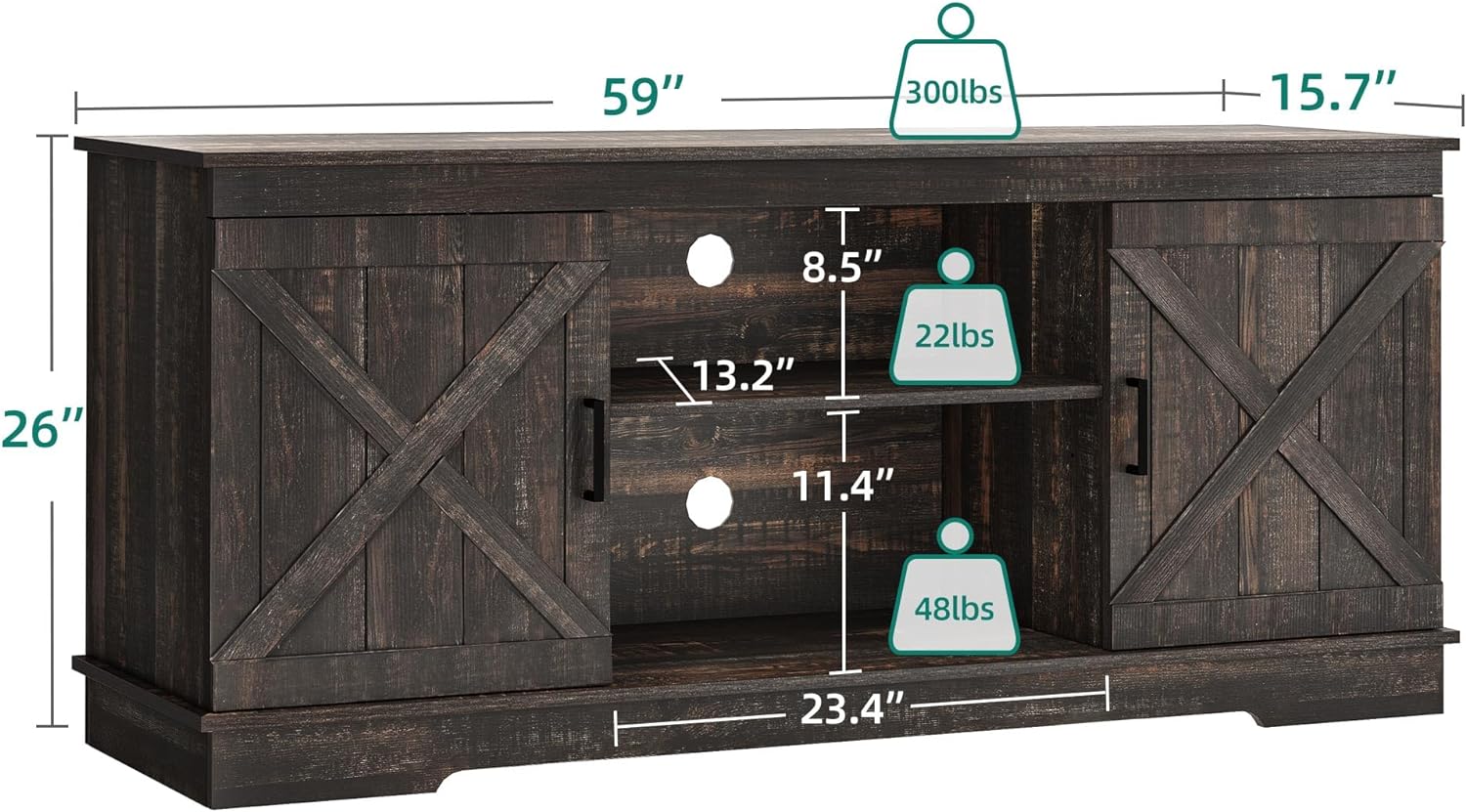 NEW - YITAHOME Buffet Cabinet, 59.5" Farmhouse Sideboard Buffet Storage Cabinet with Barn Door Coffee Bar Cabinet with Capacity 300 lbs for Home Dinning Living Room,Dark Rustic Oak, 26“ Height - Retail $197