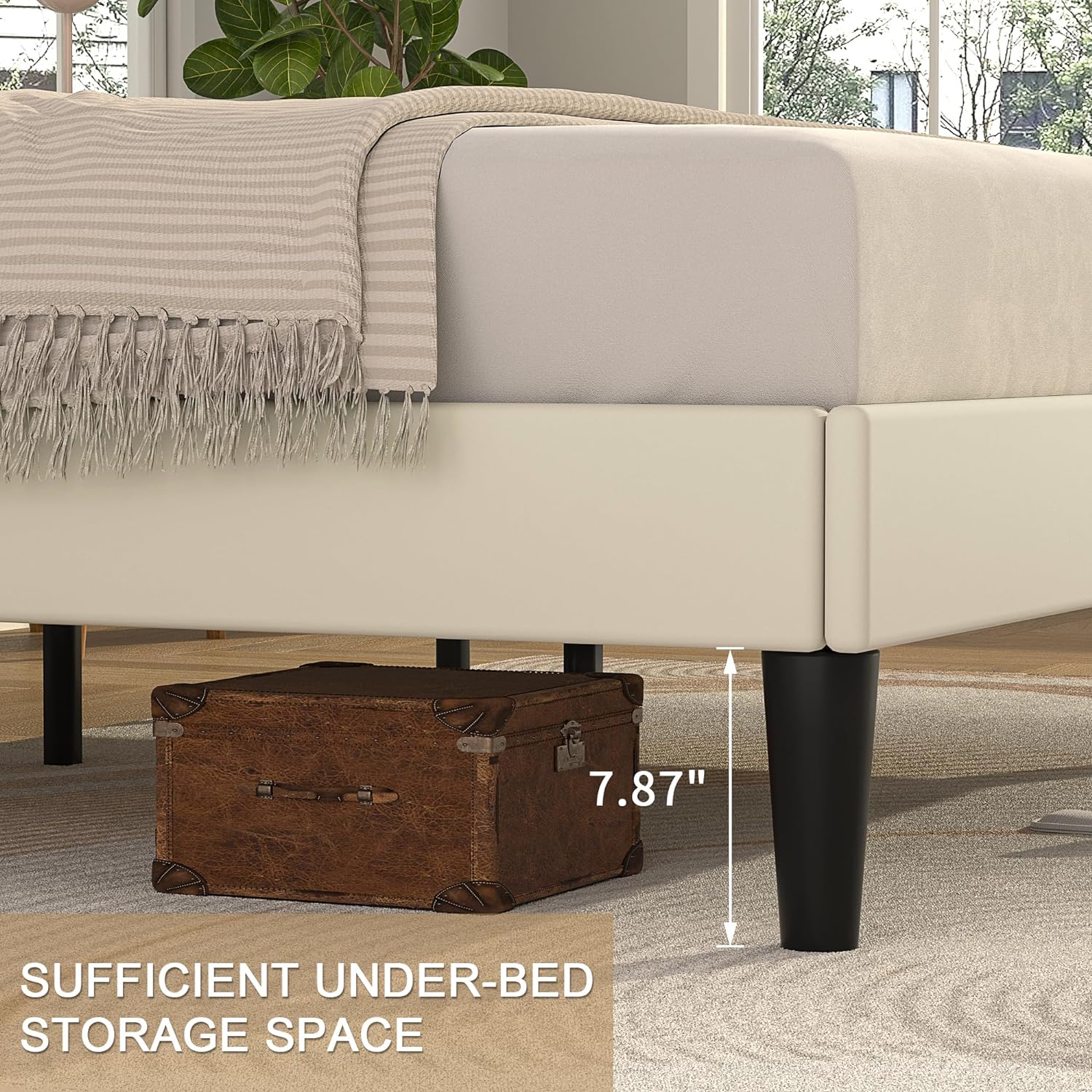 - [Sturdy Structure] This beige queen bed frame with headboard boasts a sturdy metal frame structure, supported by a series of evenly-spaced solid wood slats and extra 6 center support legs. Designed to accommodate queen size bed frames, it offers dense and strong support, capable of holding weights of up to 800lbs.