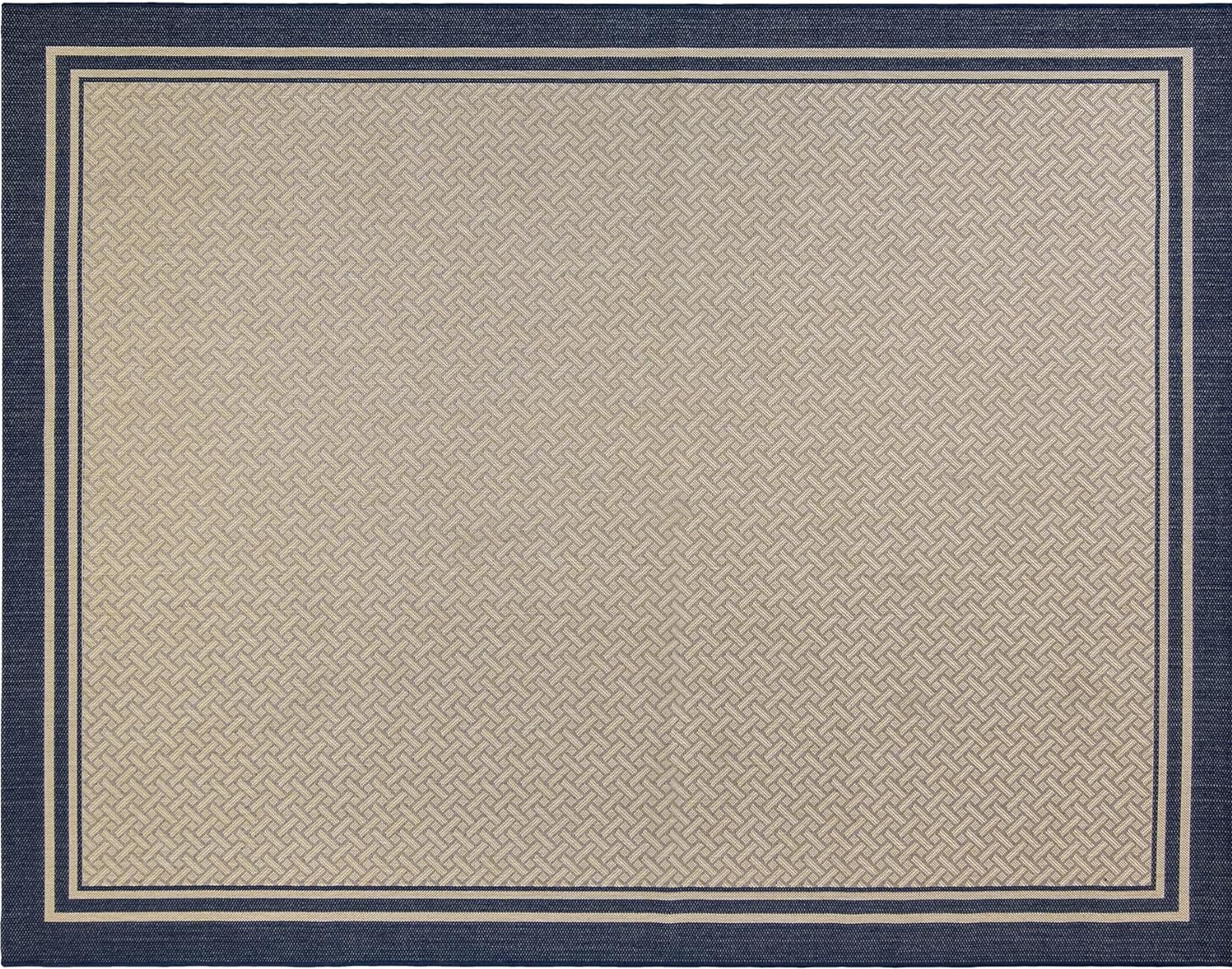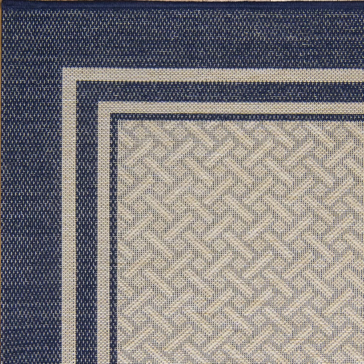 NEW - Gertmenian Indoor Outdoor Classic Flatweave Area Rug, Stain & UV Resistant Carpet, Deck, Patio, Poolside & Mudroom, 6x9 Ft Medium, Simple Border, Navy Blue, 21768 - Retail $109