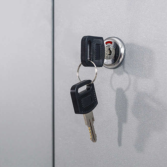 - Durable Powder Coated Grey Doors/Black Cabinet Body